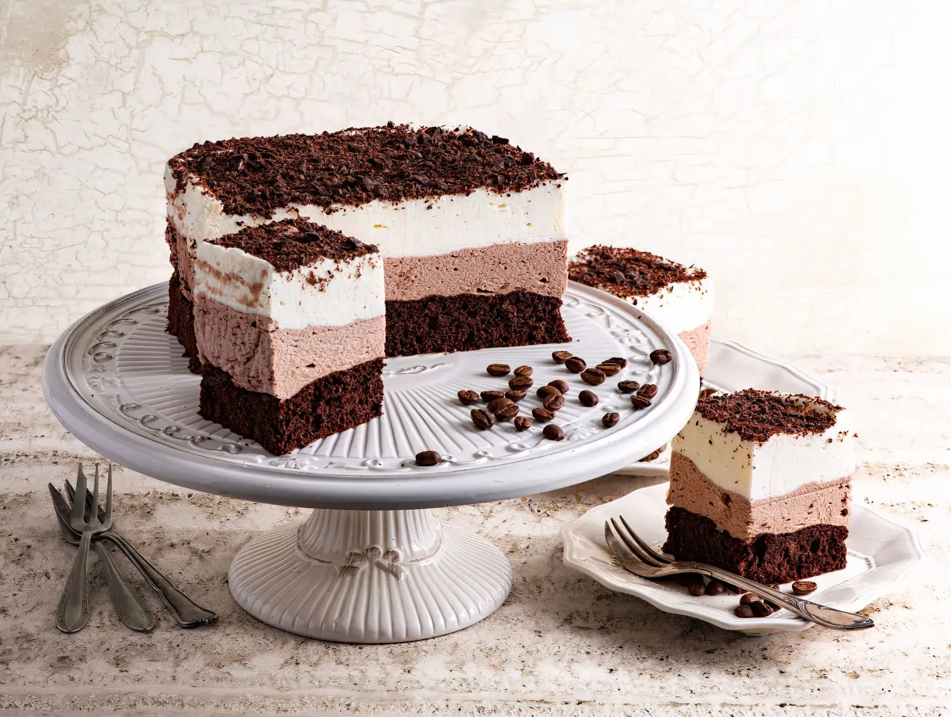 Kávové řezy jsou dokonalým sladkým potěšením pro všechny milovníky tohoto povzbuzujícího nápoje. Jsou nadýchané a lehké jako obláček a zároveň potěší jemným aroma cappuccina. Dezert se skládá z kakaového piškotu, kávové pěny a šlehačky a celý je završen vrstvou strouhané tmavé čokolády.