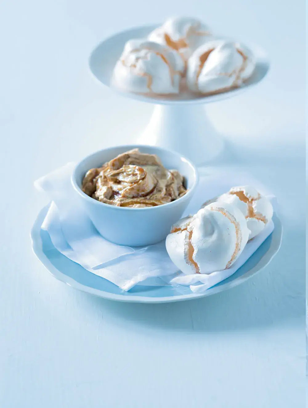 Nadýchaný krém dokonale spojuje sladkou chuť karamelu s hořkou kávou. Doplňte ho křupavými sněhovými pusinkami a rázem se ocitnete v nebi.