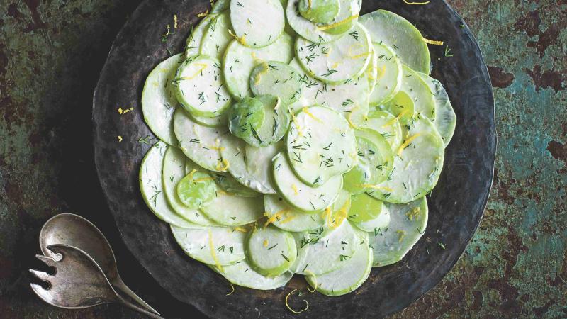 Zelný salát s jablky nejspíš znáte. Kedlubny a jablka jdou dohromady přinejmenším stejně dobře a ještě k tomu se dají efektně servírovat ve stylu carpaccia.