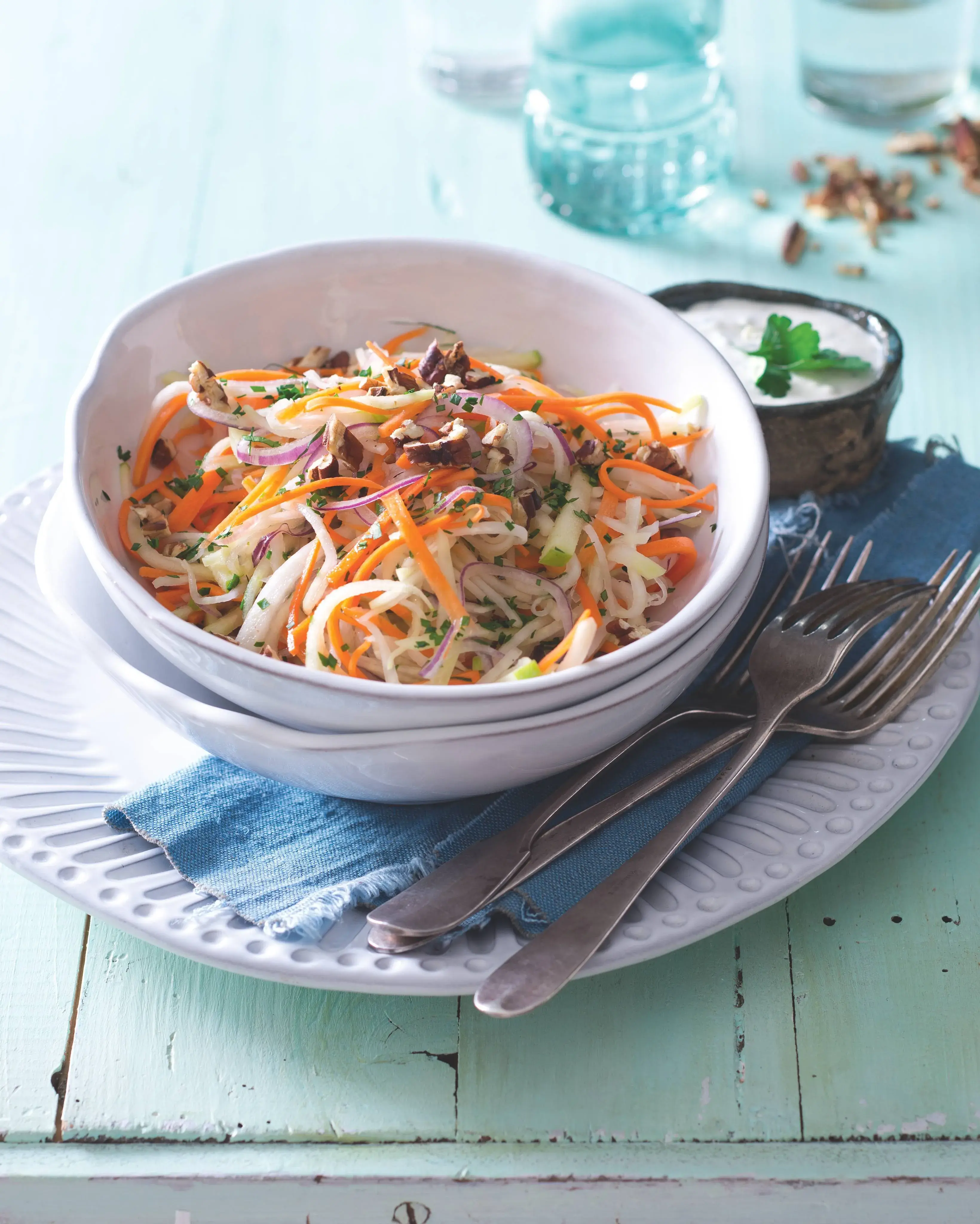 Dobrý salát nabízí různé barvy, různé konzistence a chutě. Díky zálivce z modrého sýra máte o slanou chuť a hebkou konzistenci postaráno.