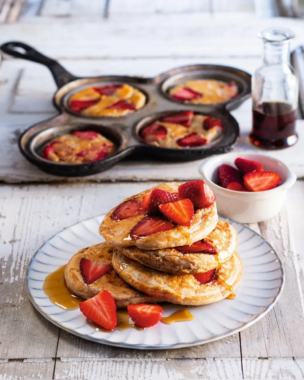 Jahody zapečené v lívancích nadýchaných jako peřinka? Ne, to není sladký sen, ale dokonalá snídaně, kterou si můžete dopřát za pár chvil. Těsto na kefírové lívance nemusí kynout, naopak, lepší je začít opékat ihned po domíchání. Kulaté lívance získáte z lívanečníku, který podrží tvar a nedovolí těstu rozlít se mimo vymezené mantinely. Pokud jej nemáte, dejte přednost pánvi s těžkým dnem.