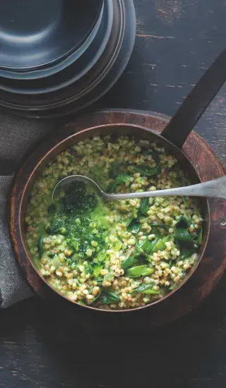 Špalda, neprošlechtěná prababička dnešní pšenice, nejen krásně chutná a voní po oříškách, ale také příznivě působí na naše zdraví. Vyzkoušejte špaldové kernotto s kozím sýrem, dostane vás.