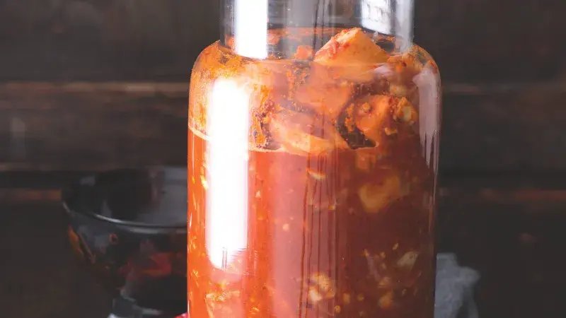 Recept jsme objevili v krásné knize Kimchi, zmiňované na předchozí straně. Dočtete se u něj, že korejští kuchaři nevěří slepě receptům, ale spoléhají se na vlastní intuici.