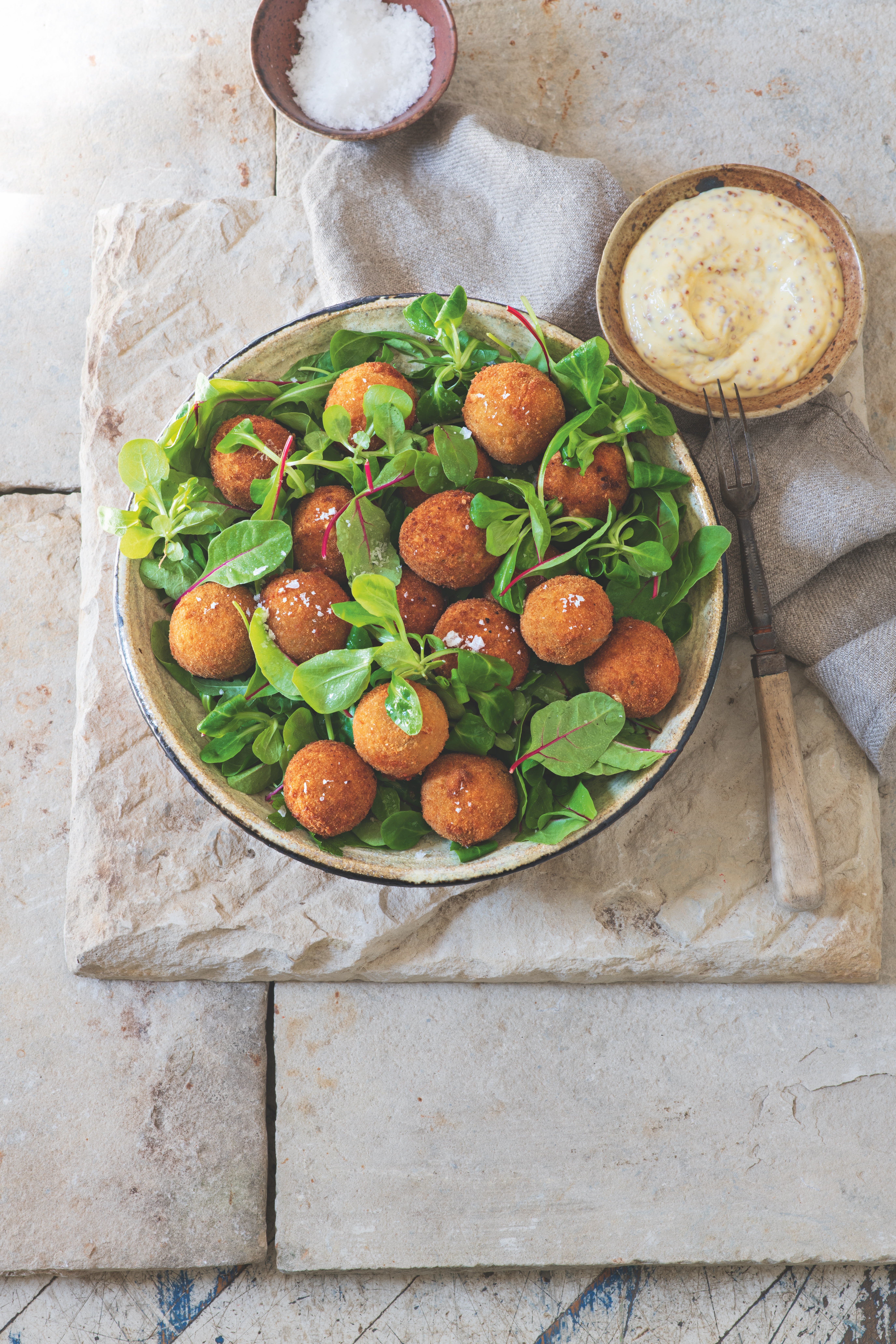 Recept na tyto kmínové krokety s olomouckými tvarůžky jsme získali od šéfkuchaře Lukáše Otáhala z bistra Na Kmíně, které najdete v rodinné usedlosti v Obříství nedaleko Prahy, kde se kmín dříve pěstoval.
