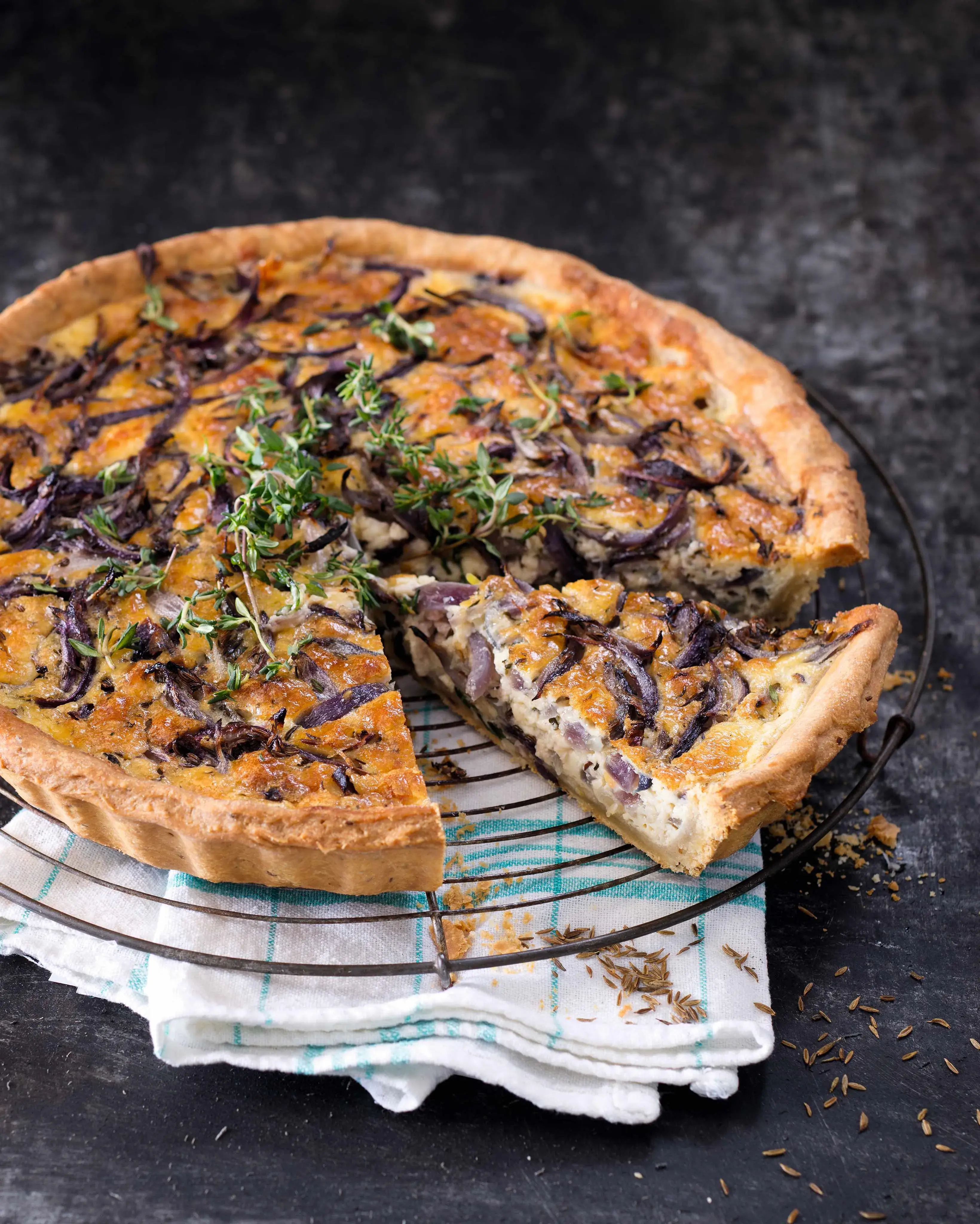 Naše odpověď na francouzský quiche – chuť domova jí dodává kmín a také ryze český sýr.