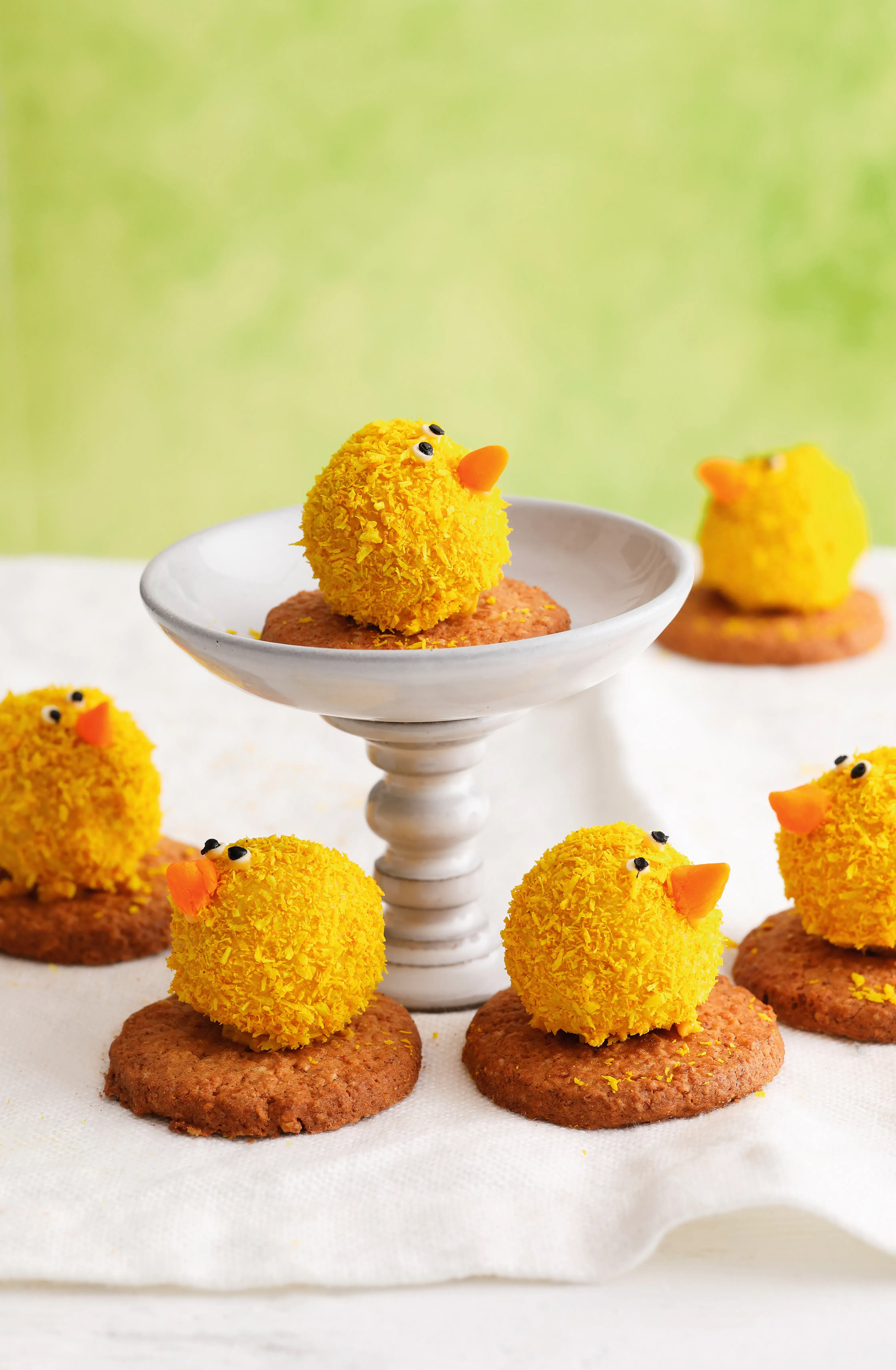 Přivolejte první jarní paprsky sladkými velikonočními kuřátky. S chutí si je dají děti i dospělí. Na jejich přípravu použijte klidně světlou bábovku a místo lepidla je můžete k sušence přilepit také rozehřátou bílou čokoládou.