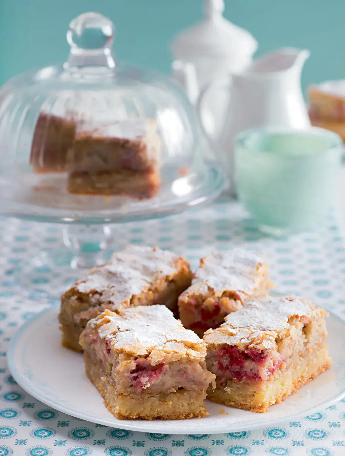 Vyladěný recept na kokosové řezy s rebarborou a jahodami udělá z obyčejné buchty na plech hvězdu nedělního odpoledne. Pokud jste si v létě zamrazili sáček rebarbory, tak teď je nejvyšší čas jeden otevřít. V sezóně pochopitelně použijte čerstvou.