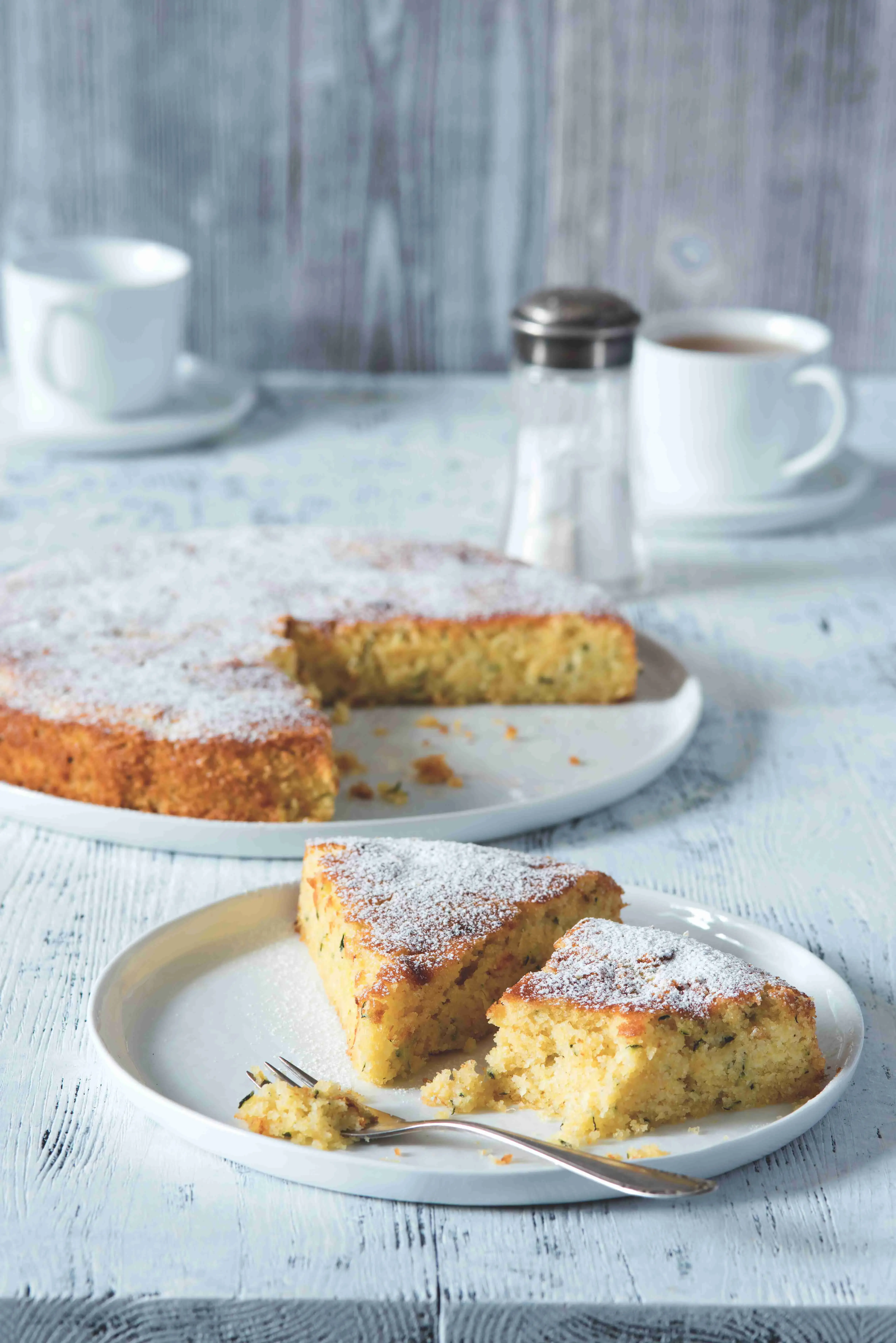 Dezerty se zeleninou nemusí být pokaždé hutné, cuketový koláč s polentou je lehký jako vánek.