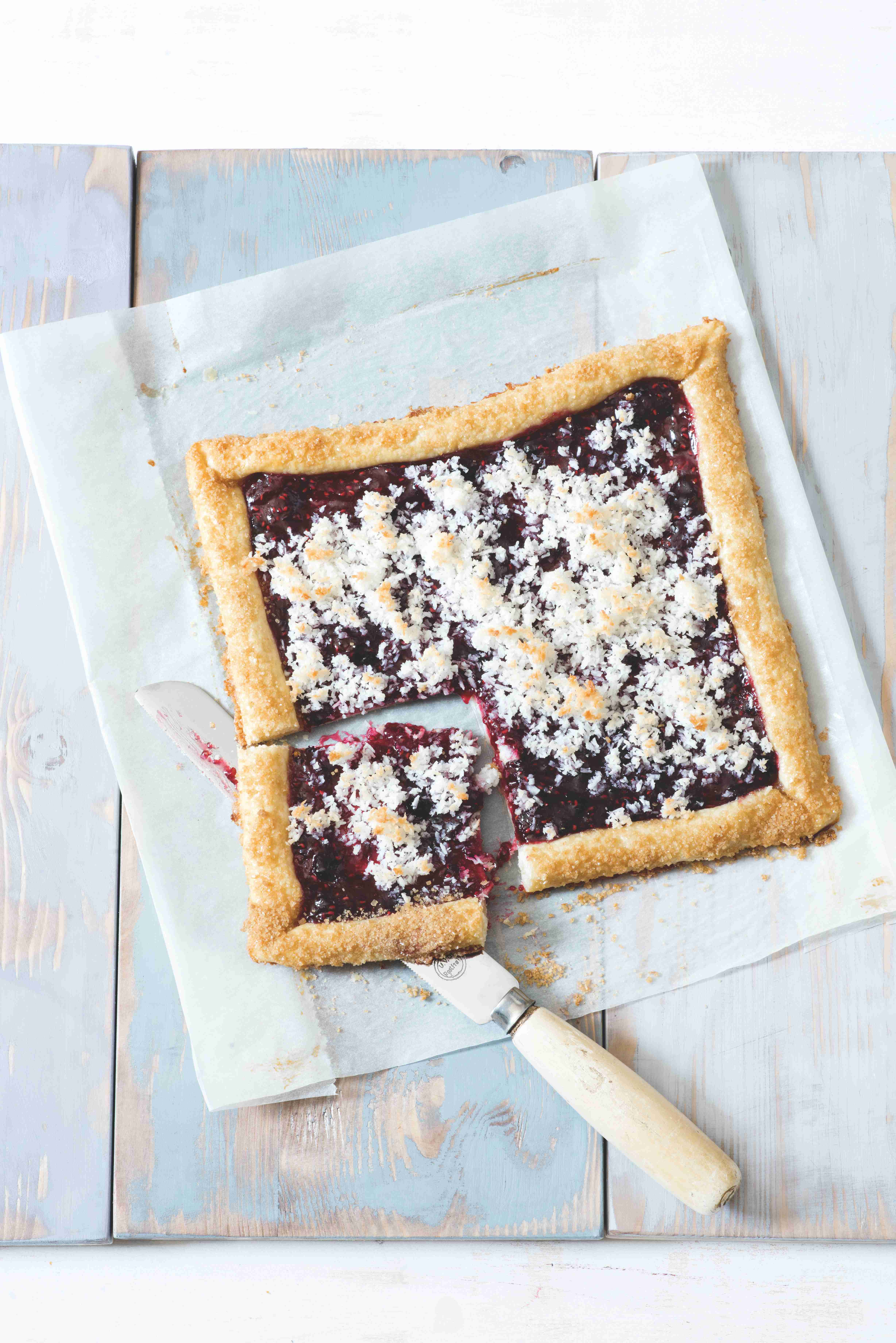 Křehké těsto, ovoce a křupavá drobenka. Tenhle koláč si zamilujete! Můžete jej péct v různých tvarech: v kulaté formě nebo jako my v podobě řezů s vypečenými okraji.