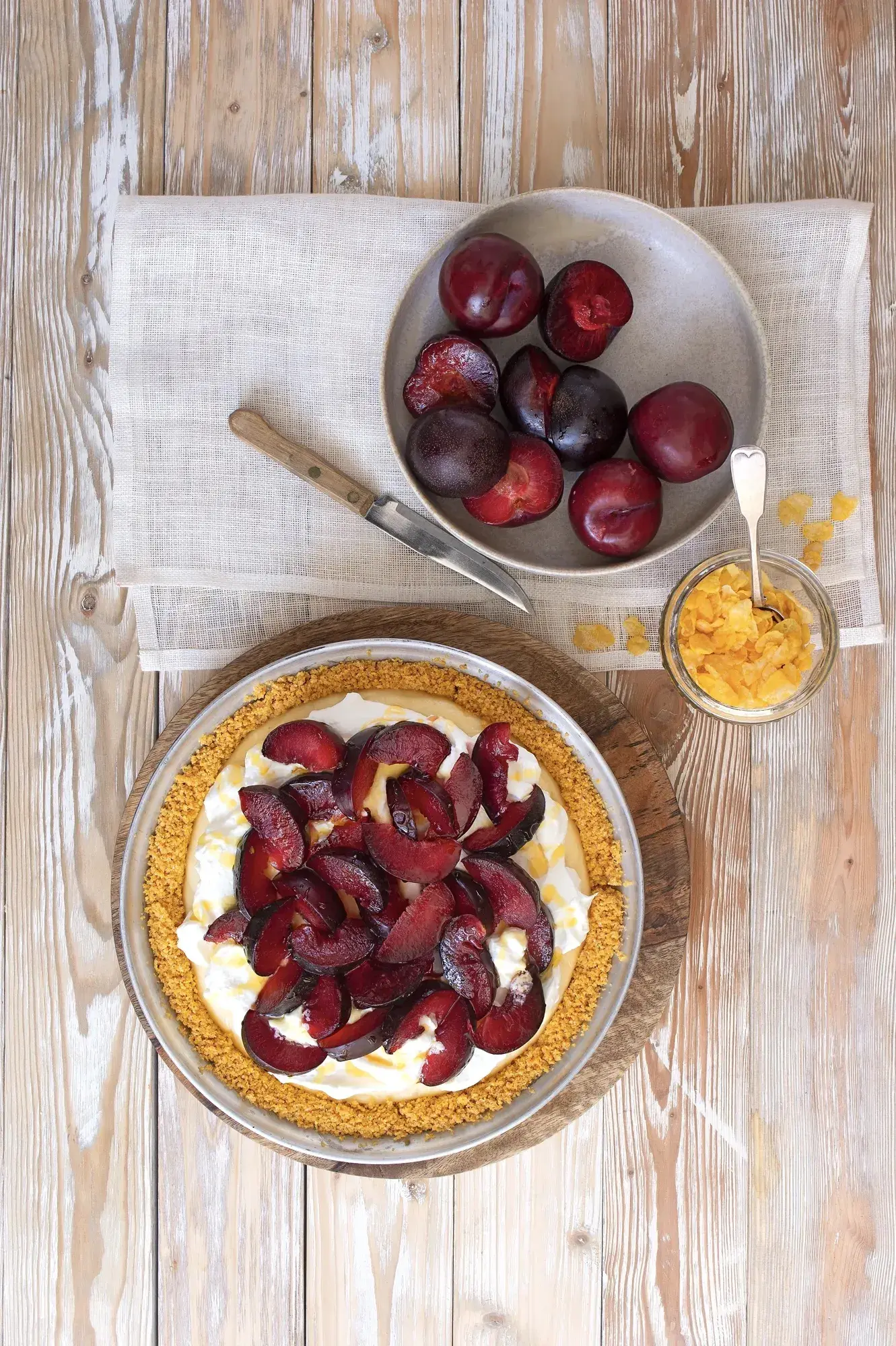 Kukuřičné lupínky nemusí patřit jen na snídaňový stůl. V tomhle koláči s krémem a blumami hrají hlavní roli jako základ korpusu – rozmixované cornflakes nahradí tradiční sušenky. Výsledkem je lehký dezert s výraznou chutí zralého ovoce, jemného krému a křupavého základu.