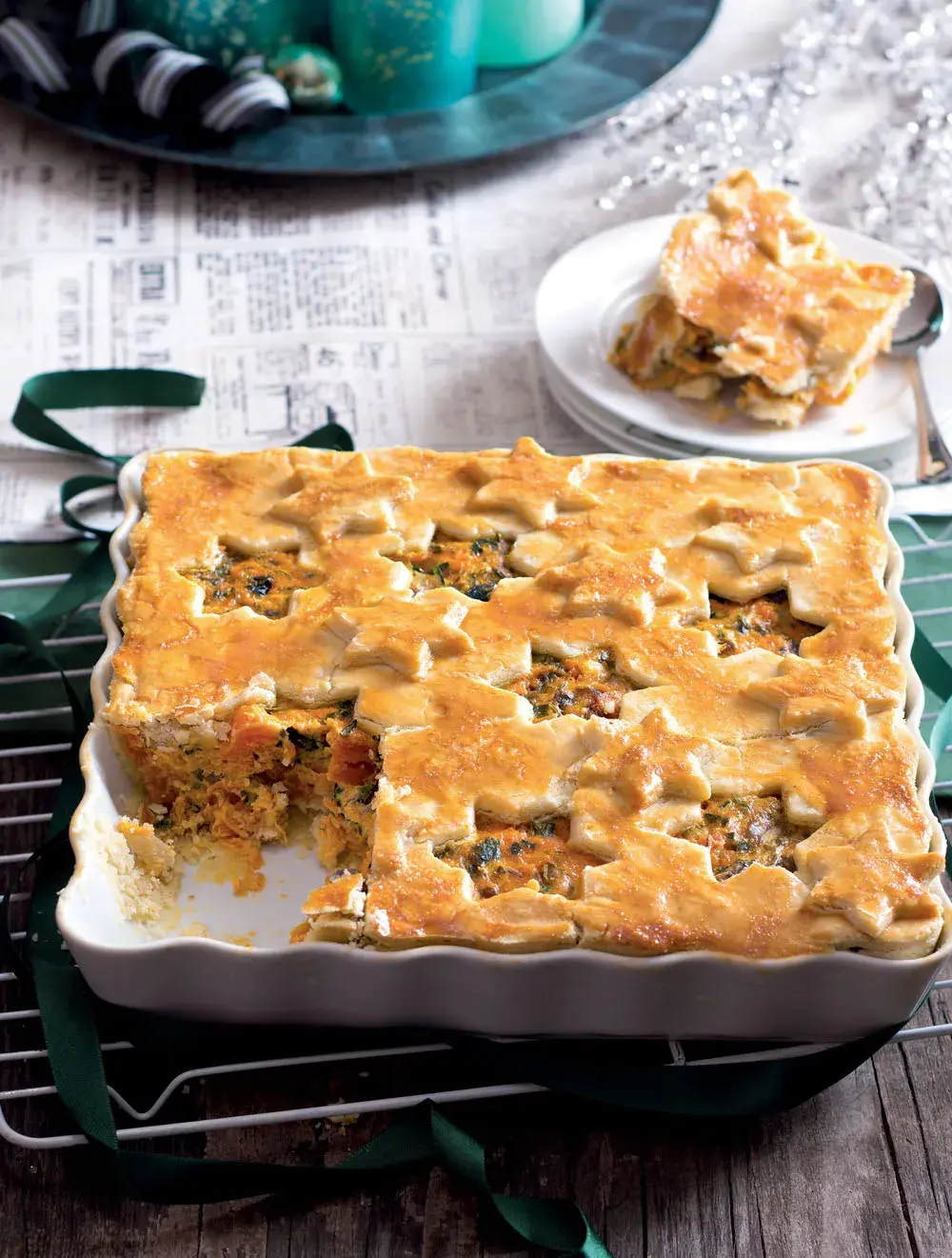 Slaný koláč ve vánočním balení. Potěší nejen vegetariány.