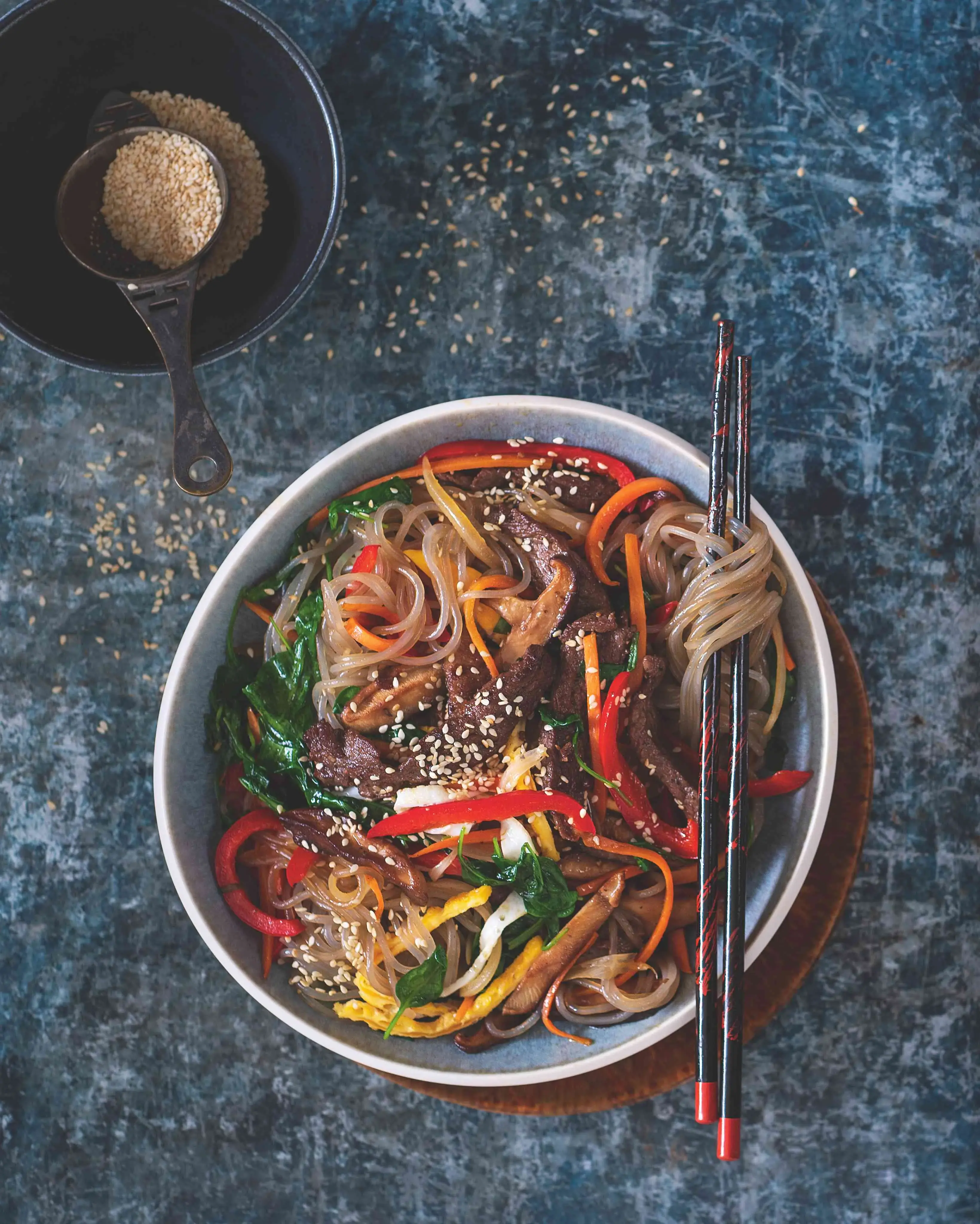 Recept vypadá složitě, ale ve skutečnosti je příprava velmi jednoduchá – nejprve si nachystáte všechny suroviny a pak je trpělivě jednu po druhé opečete. Korejské japchae [džapči] se obvykle podává jako příloha, ale obstojí i jako samostatné jídlo, ať už v tradičním doprovodu rýže, nebo bez ní.