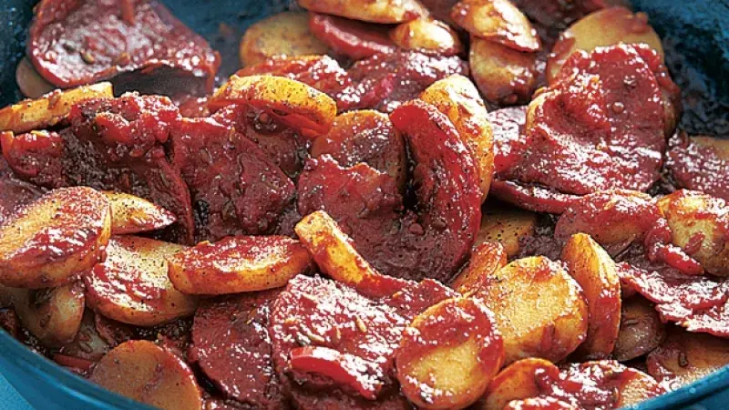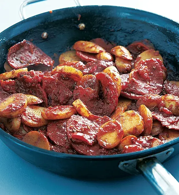 Ostrý španělský recept. Spojení výrazného koření, salámu a nových brambor nadchne i vás.