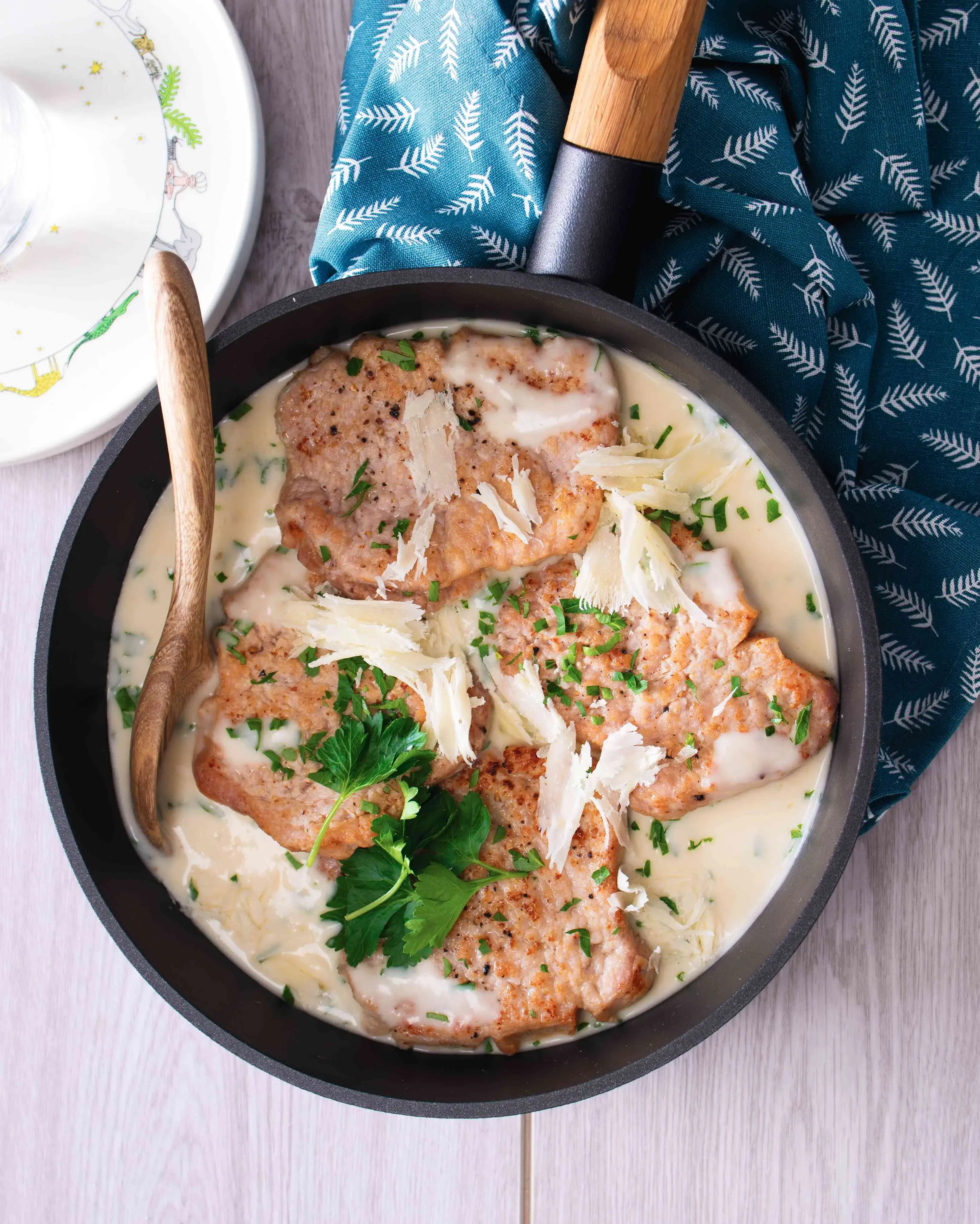 Máte-li doma malé milovníky parmazánu, tímhle jídlem je zaručeně potěšíte. Kotlety solte už jen velmi mírně, parmazán je sám o sobě vydatným zdrojem soli. Kotlety v krémové omáčce si zamilují i děti.