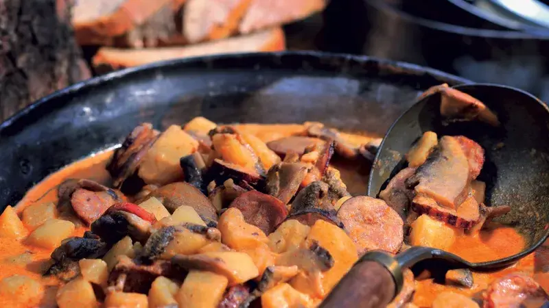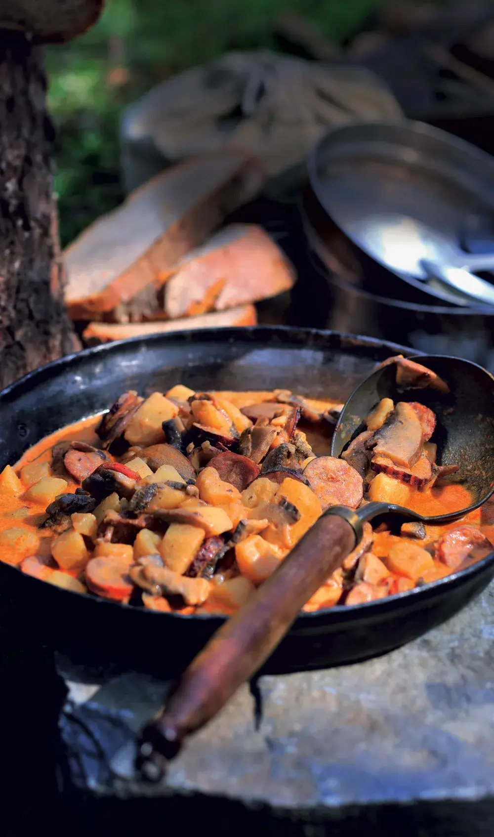 Jednoduchý guláš, který si můžete připravit na výletě. Jen si dovolujeme připomenout, že v přírodě lze oheň rozdělávat jen na vyhrazených místech. Neradi bychom, abyste kvůli našemu receptu zapálili les.