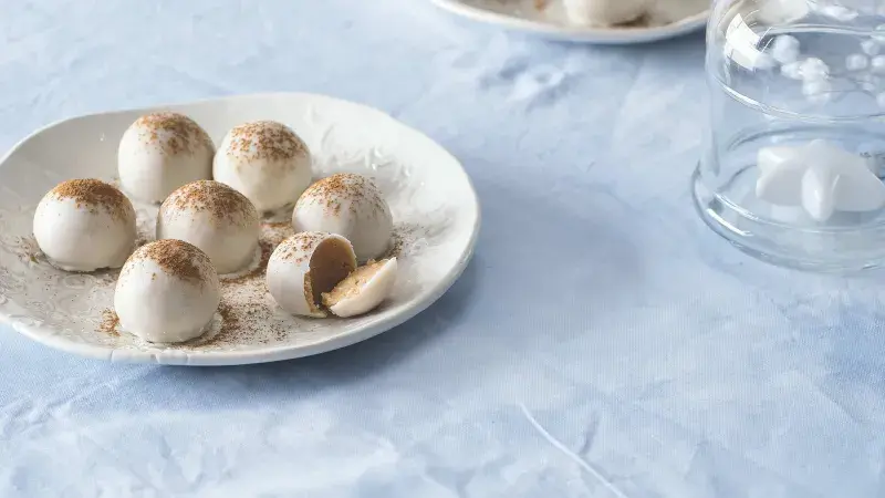 Egg nog je americká obdoba našeho vaječného koňaku. I proto nás recept na tyhle nepečené kuličky tolik zaujal! Doporučujeme použít domácí piškot, třeba odřezky z dortu, koláče či rolády, které vám zbyly. A nešetřit alkoholem!