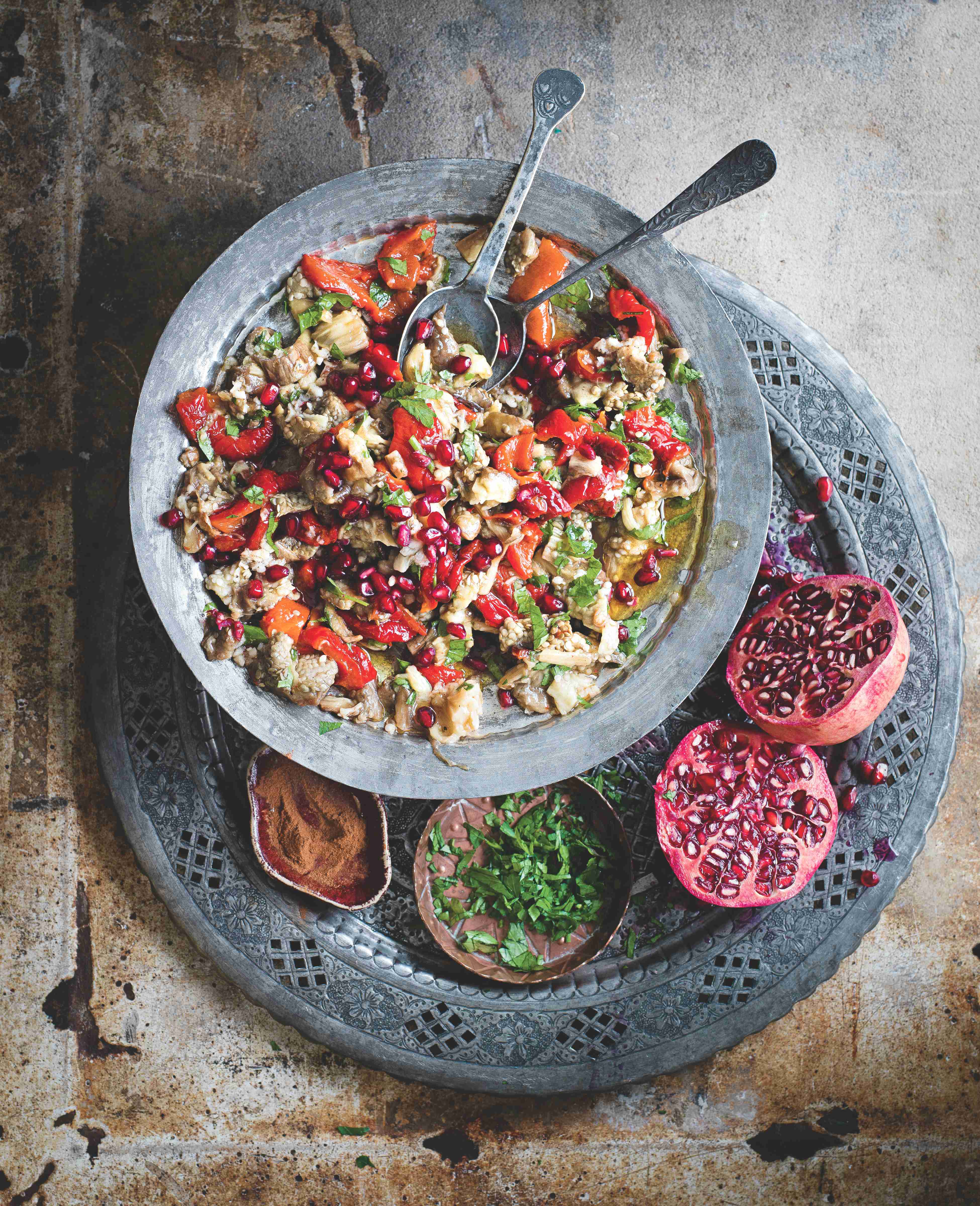 Lilky, papriky a granátové jablko, to je přímo esence orientální kuchyně. Nepodceňte fázi opékání a nebojte se zeleniny zbarvené až dočerna, právě ta dává jídlu jedinečnou chuť.