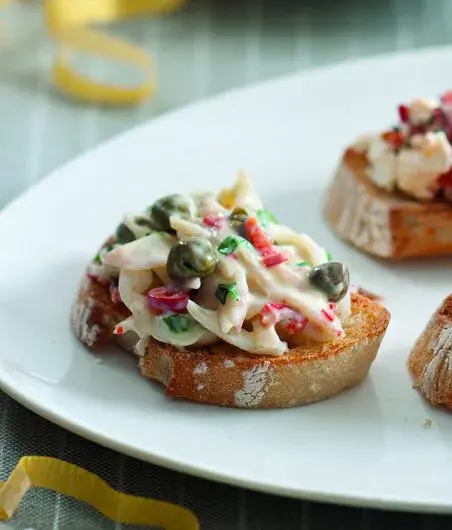 Krabí pomazánka je stálice silvestrovských oslav. Hodí se na chlebíčky nebo opečenou bagetu. Je to nejlepší pomazánka z krabích tyčinek, kterou připravíte během pár minut a to i v případě, že k vám zavítá nečekaná návštěva. Než si zují boty, stihnete krabí pomazánku s majonézou i servírovat.