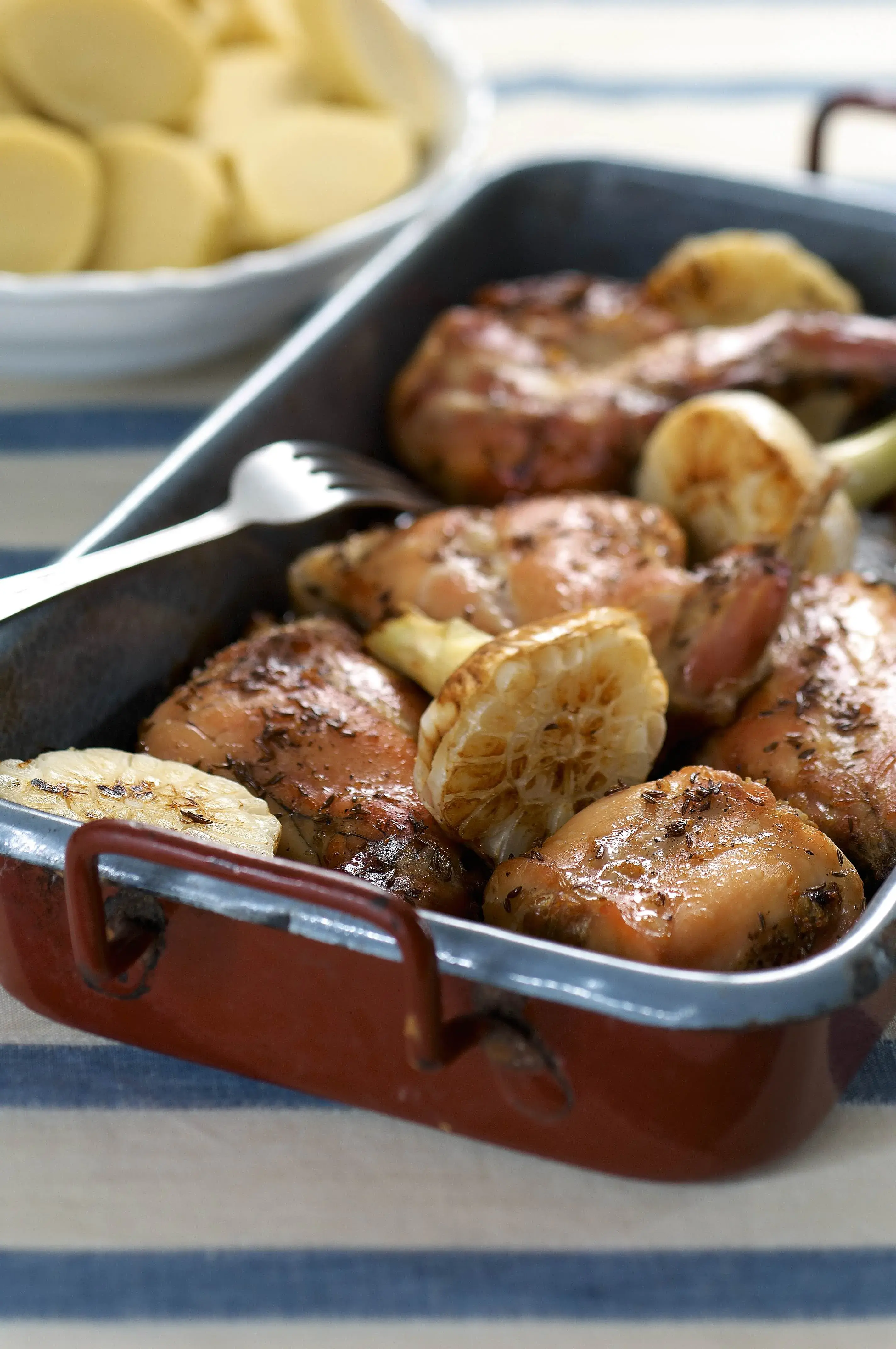 Báječně chutná i s čerstvým chlebem – králík na česneku je ale dokonalý teprve s domácími bramborovými knedlíky, moravským zelím nebo dušeným špenátem. Během doby, co se bude maso péct, zvládnete hravě připravit všechny zmíněné přílohy. Pečený králík se tak stane luxusním nedělním obědem pro celou rodinu.