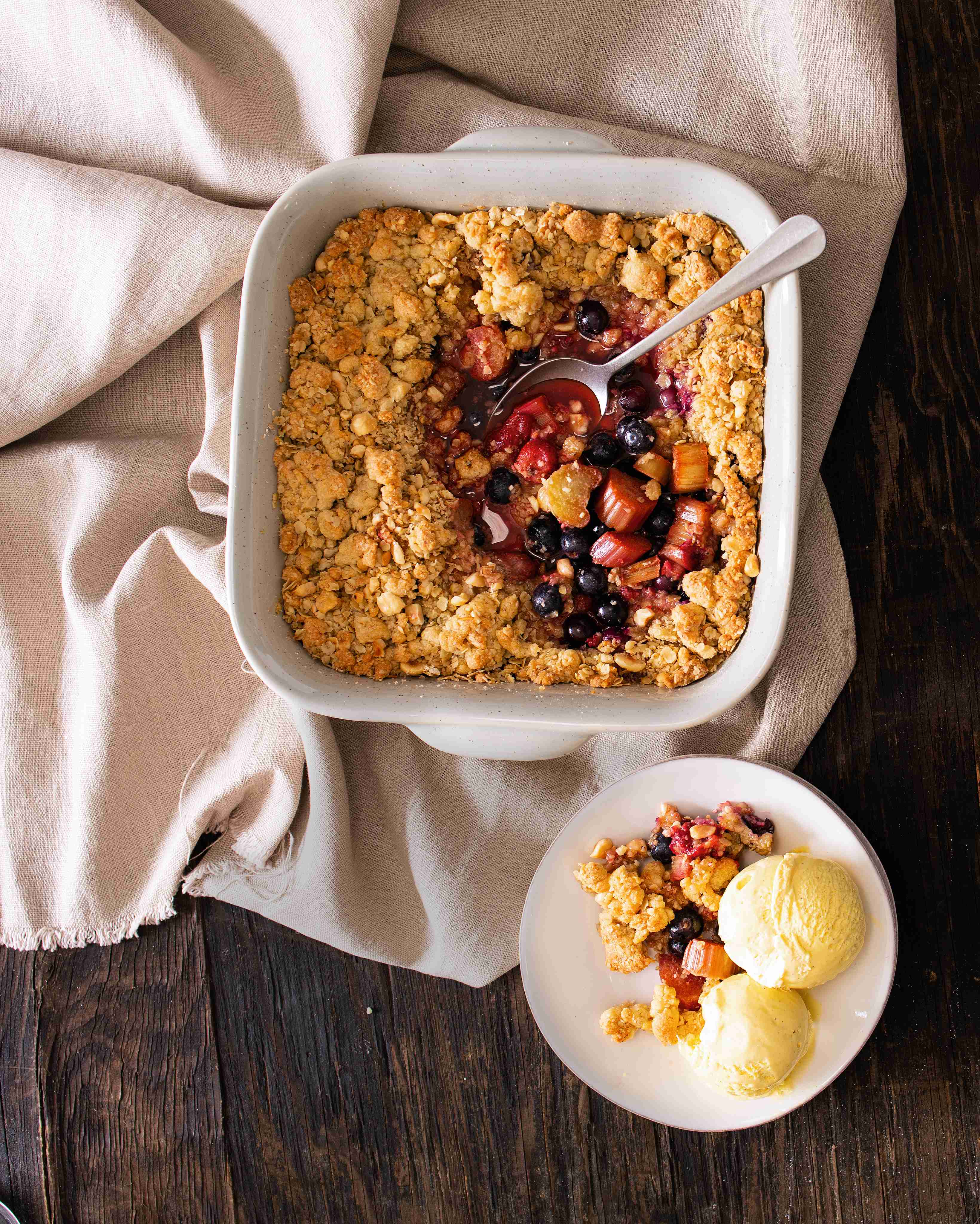 Stačí základní sladké těsto, které můžete rozdrobit i nastrouhat a hned použít. Nebo k němu ještě předtím, než jej nasypete na ovoce, přimíchejte vločky, ořechy, mandle a voňavé koření. Výsledkem je fantastický krambl, který můžete podávat s jogurtem či tvarohem k snídani nebo se zmrzlinou jako dezert.