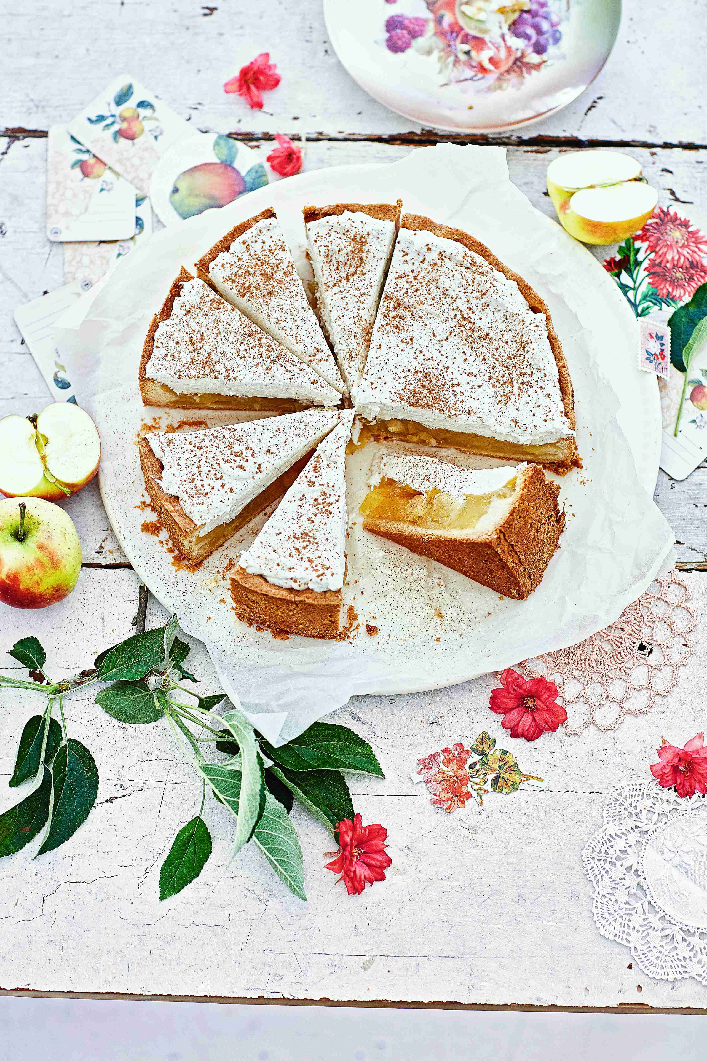 Jakmile začne sezona letních jablek, je jich tolik, že nevíme, co s nimi. Ovšem nechat je ladem by byla škoda. Co nesníme jen tak, schováme do koláče z křehkého těsta. Pomyslná třešinka na dortu? Pořádná čepice nadýchané šlehačky jemně poprášená skořicí.