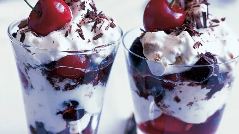 Doslova prostopášný pudink! Třešně v něm svůdně doplňuje tmavá čokoláda, jemně natrpklá vůně mandlového likéru a sušenky. Praktický tip: Tabulku čokolády dejte před strouháním aspoň na půl hodiny do mrazáku, aby se vám při práci neroztékala v rukou.
