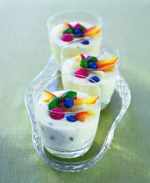 Autor: Redakce Apetit , z vydání Apetit Krém z bílé čokolády s bazalkou a malinami