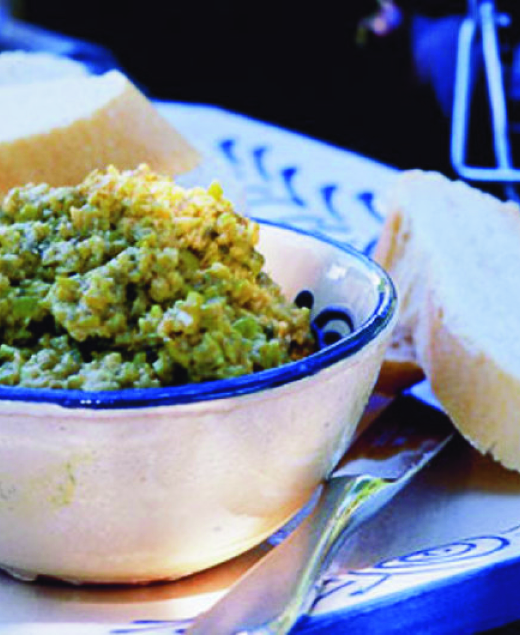 Španělé říkají tomuto jednoduchému pyré pasta de aceituna. Je skvělé na světlé pečivo, jako je třeba bageta nebo ciabatta. Zkuste je na jednohubky, podávané před obědem nebo večeří, či na piknik. Pyré si můžete připravit až dva dny předem.