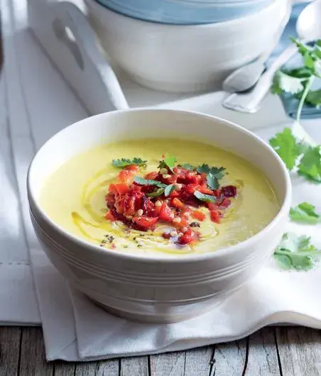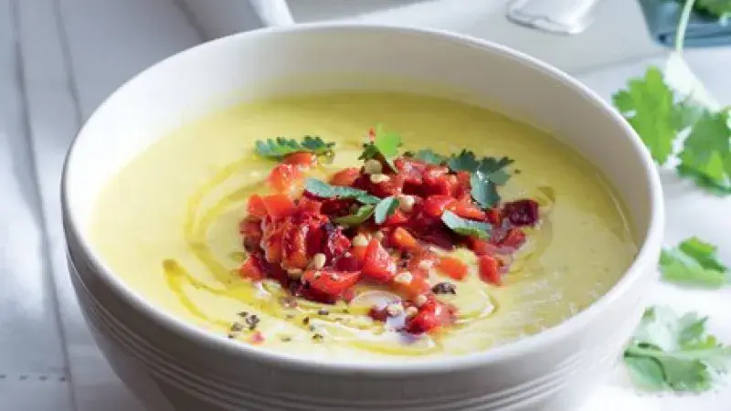 Kukuřičná polévka vás překvapí velmi příjemnou nasládlou chutí. Skvěle ji doplňují navinulé pečené papriky a čerstvý koriandr.