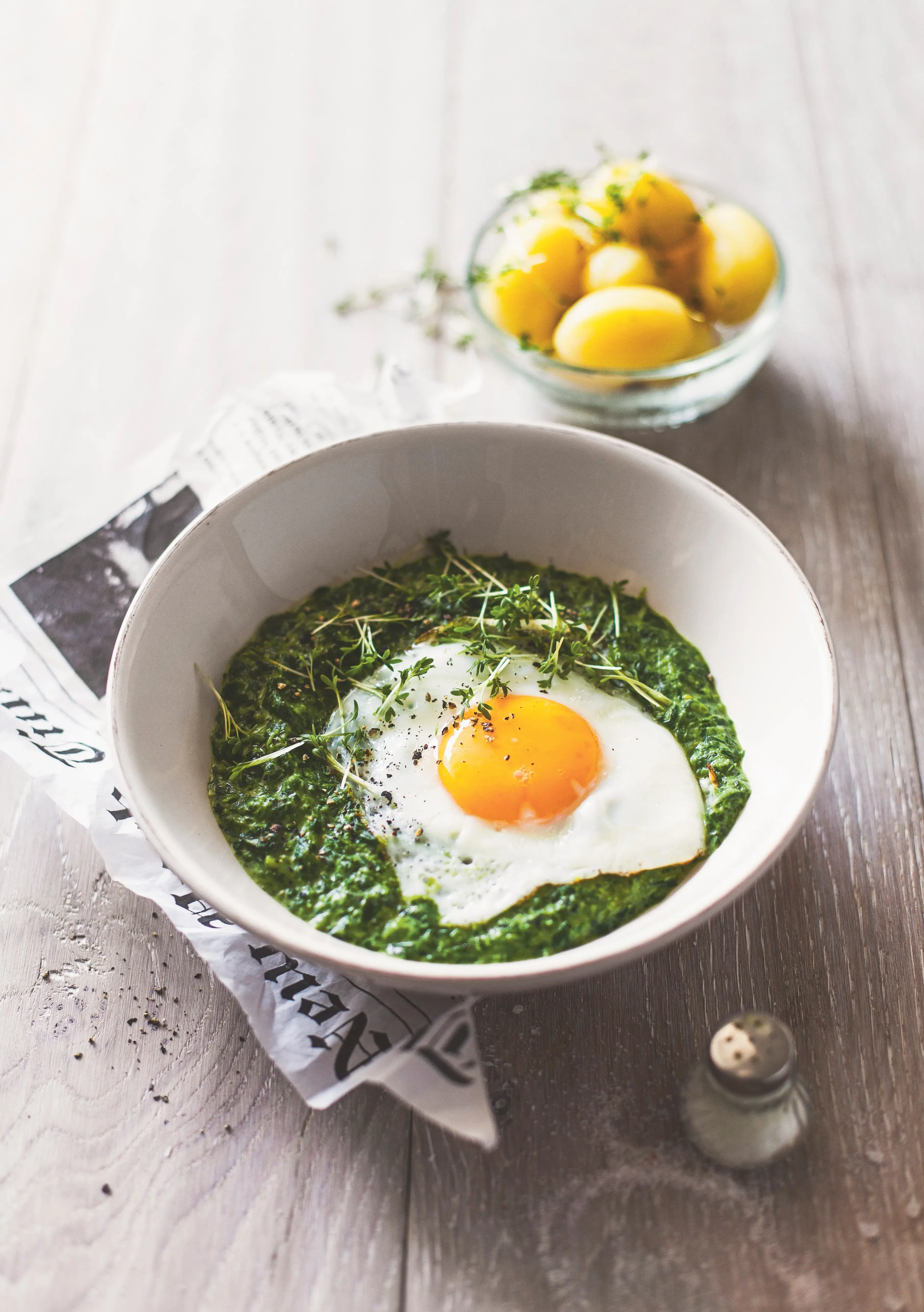 Špenát se sázeným vejcem je jednoduché a výživné jídlo, které má v repertoáru snad každý – a pokud náhodou ne, třeba si oblíbíte zrovna náš recept. Rychlé bezmasé jídlo, jako stvořené pro jarní dny.