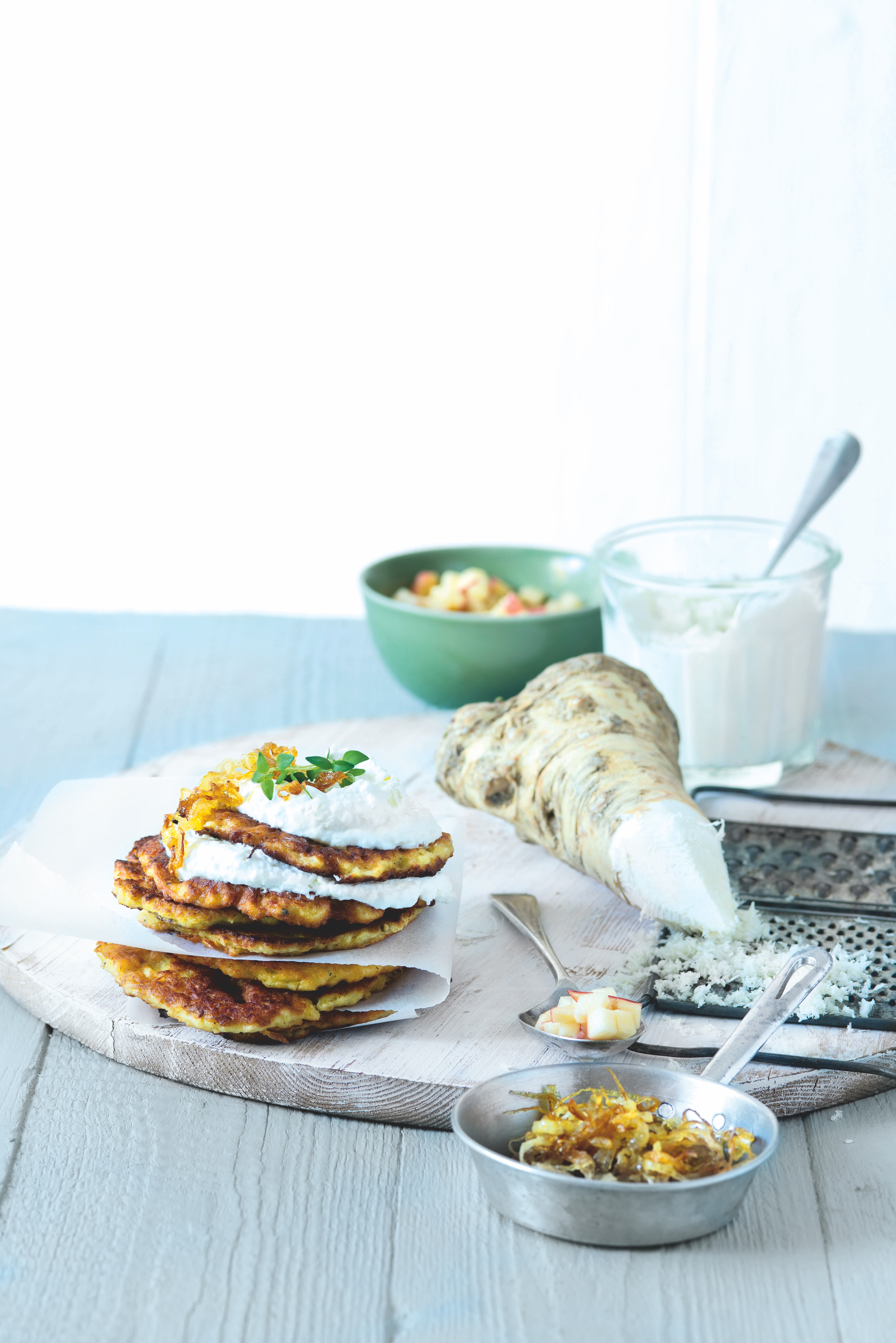 Křenu není nikdy dost, proto jsme nakládaný smetanový zahrnuli do bramborákového těsta a čerstvě strouhaný nechali k podávání. Jídlo, které má skutečně říz!