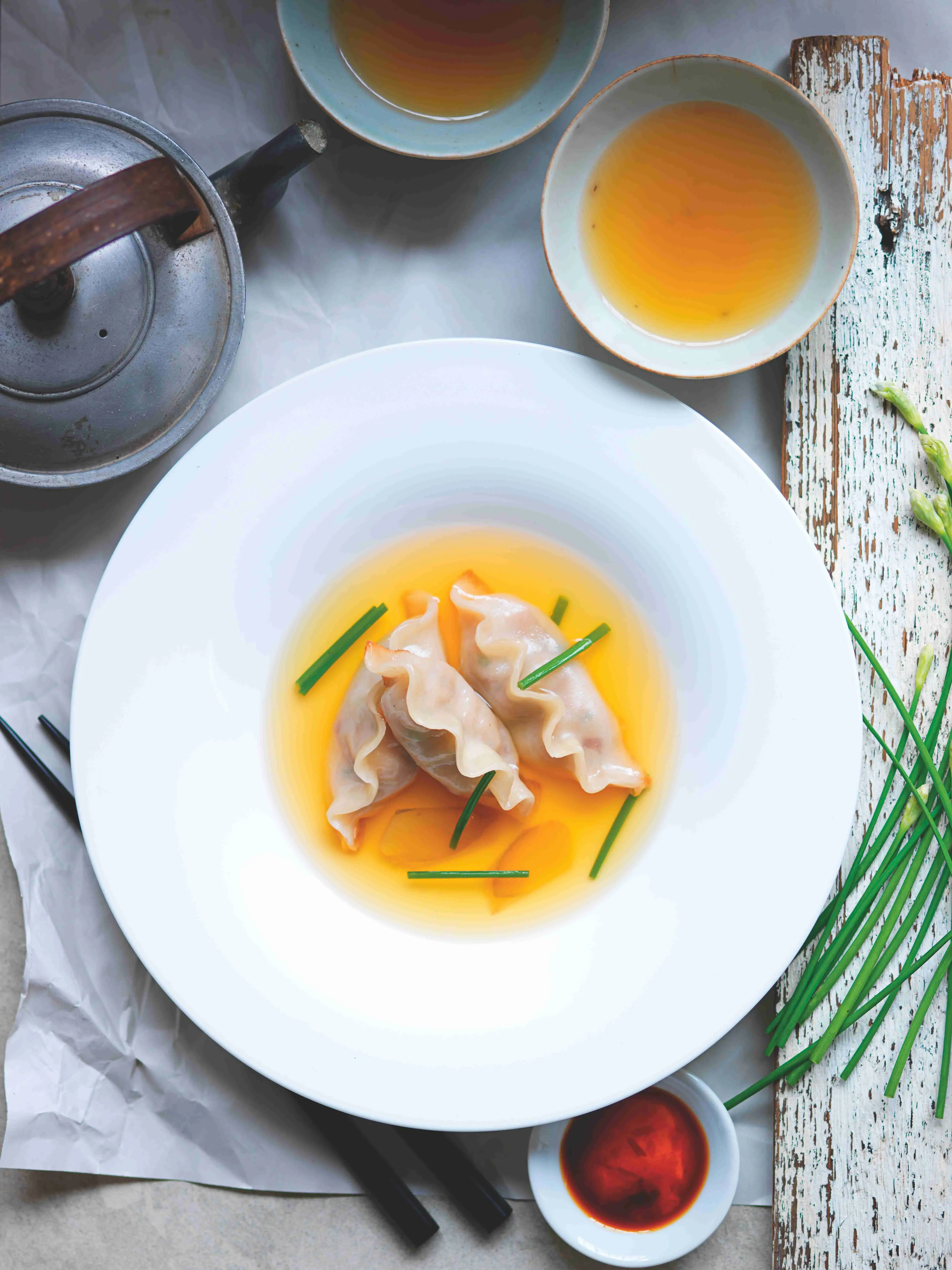 Domácími knedlíčky gyoza vždy oslníte. Tahle elegantní verze s vývarem hravě obstojí jako první chod luxusního oběda či večeře.