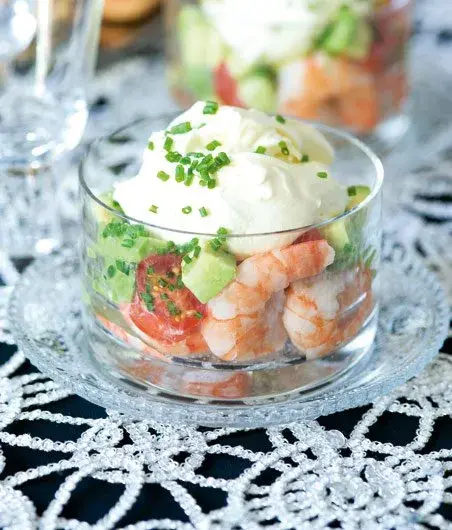 Recept je eufemisticky řečeno trochu zmatený. V úvodu je uvedeno, že je pro šest osob, poté se mají krevety rozdělit do 12 skleniček. Tabasco je ve výčtu ingrediencí uvedeno jen na ozdobu, poté se má přidat i k podkladu poháru. Rozhodně nedoporučuji podle něj postupovat. Stejný recept vyšel i v časopisu Albertu, pravda později, ale správně. A výsledek byl výborný.