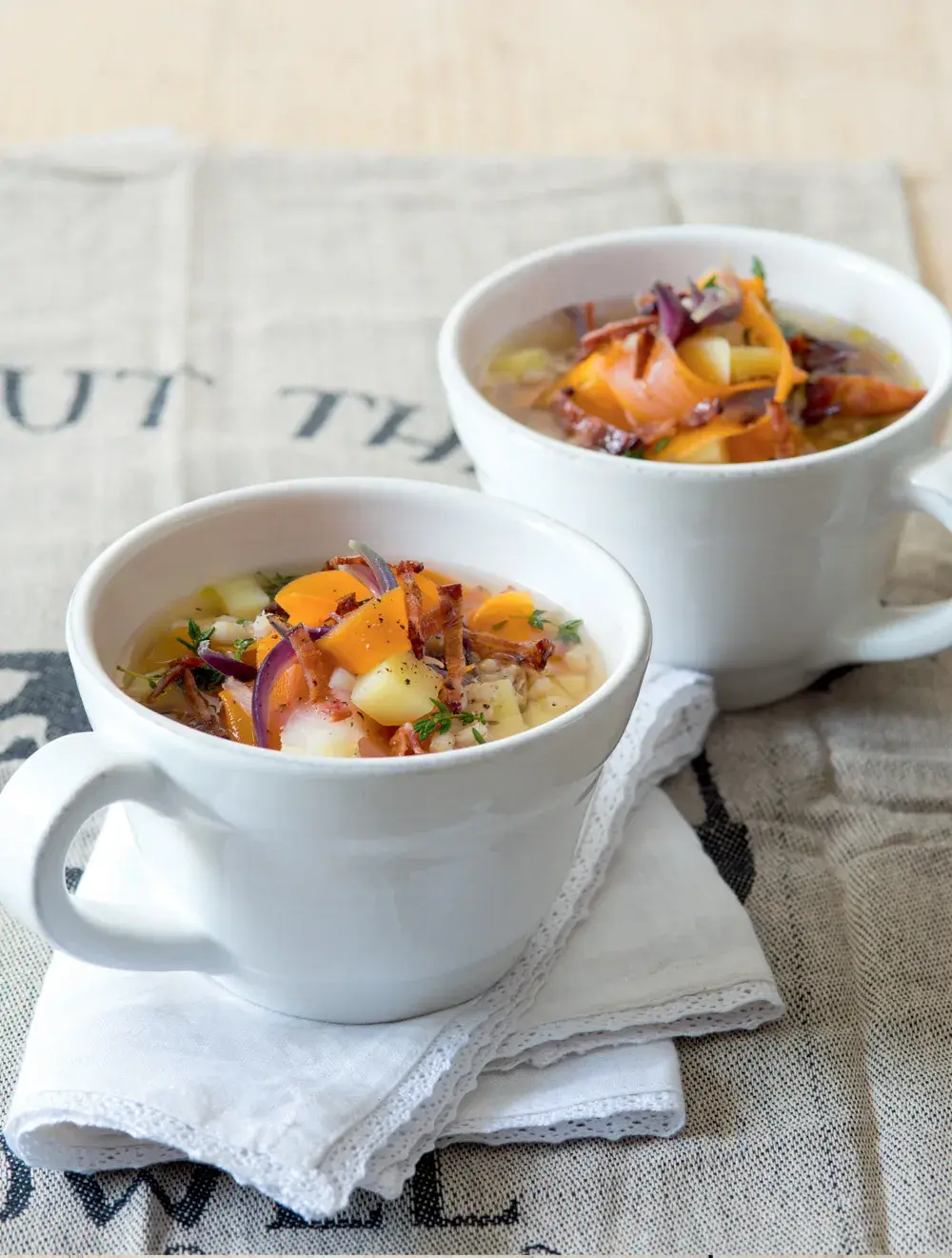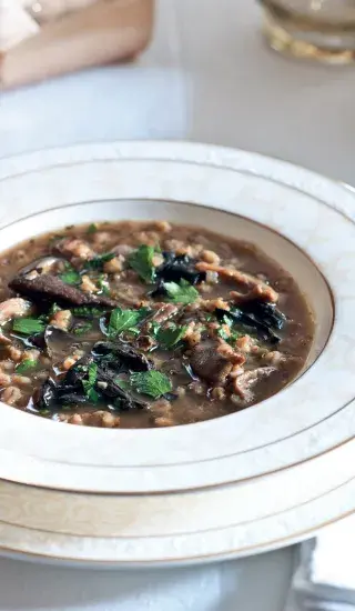 Kroupová polévka de luxe – výstižné shrnutí pro tuto českou klasiku vylepšenou o kořenovou zeleninu a plátky opečené slaniny. Pokud máte rádi houby, můžete je do polévky také přidat, bude pak víc připomínat bramboračku. Kroupová polévka s kořenovou zeleninou je ideální zahřívací jídlo na chladné podzimní dny.