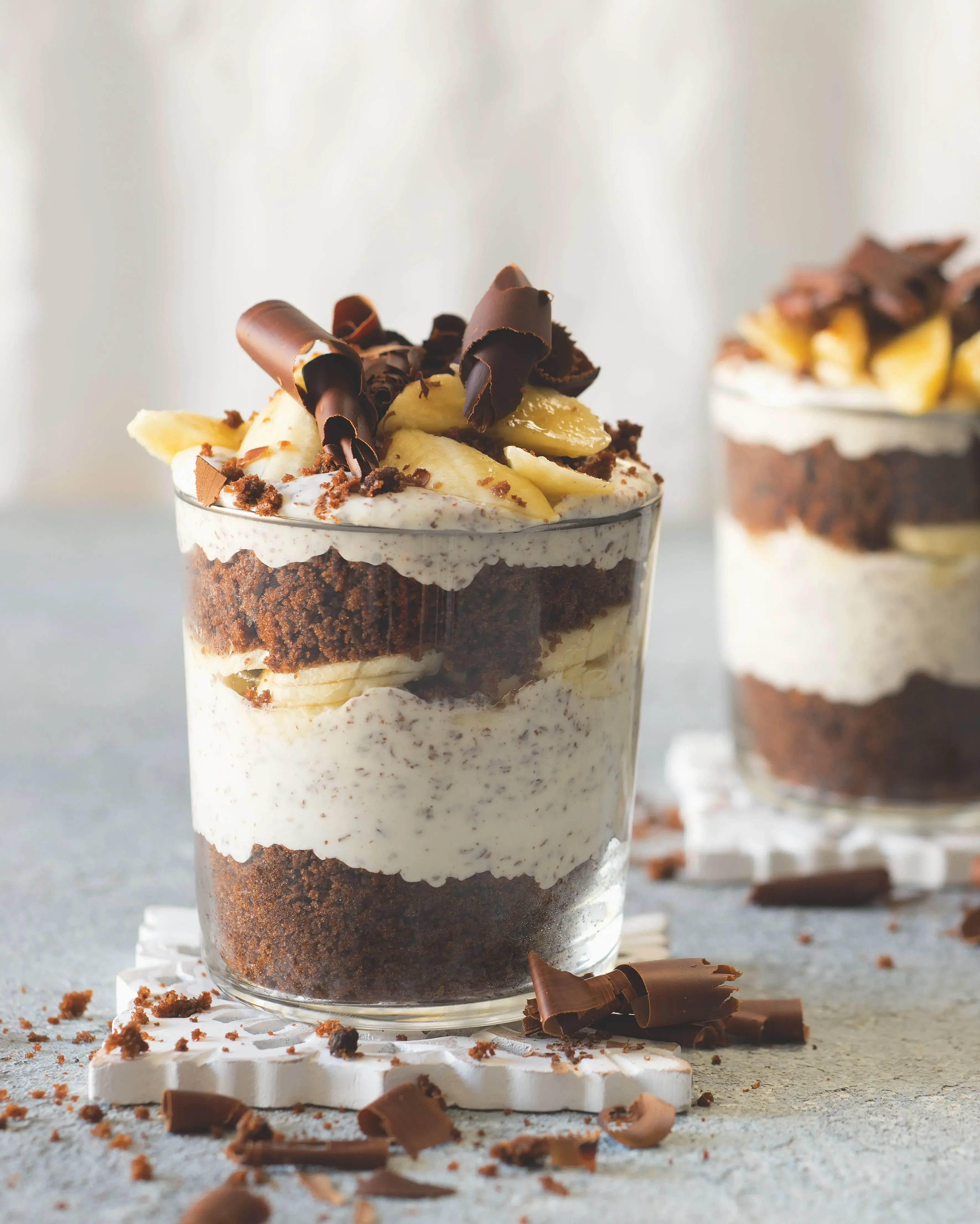 Pokud milujete krtkův dort, budete tenhle pohár přímo zbožňovat! Slavný banánový moučník rázem získá úplně jiný rozměr. Vychutnejte si krtkův dort jako sympatický dezert do skleničky a okouzlete tím své hosty na rodinné oslavě či párty s přáteli. A jestli máte hotový čokoládový korpus, sestavit jednotlivé ingredience už bude hračka.