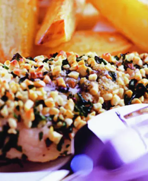Sýr s modrou plísní a petrželka dodají kuřecím řízkům vůni, mandle zase křupavost. Získáte večeři jako z vyhlášené restaurace.