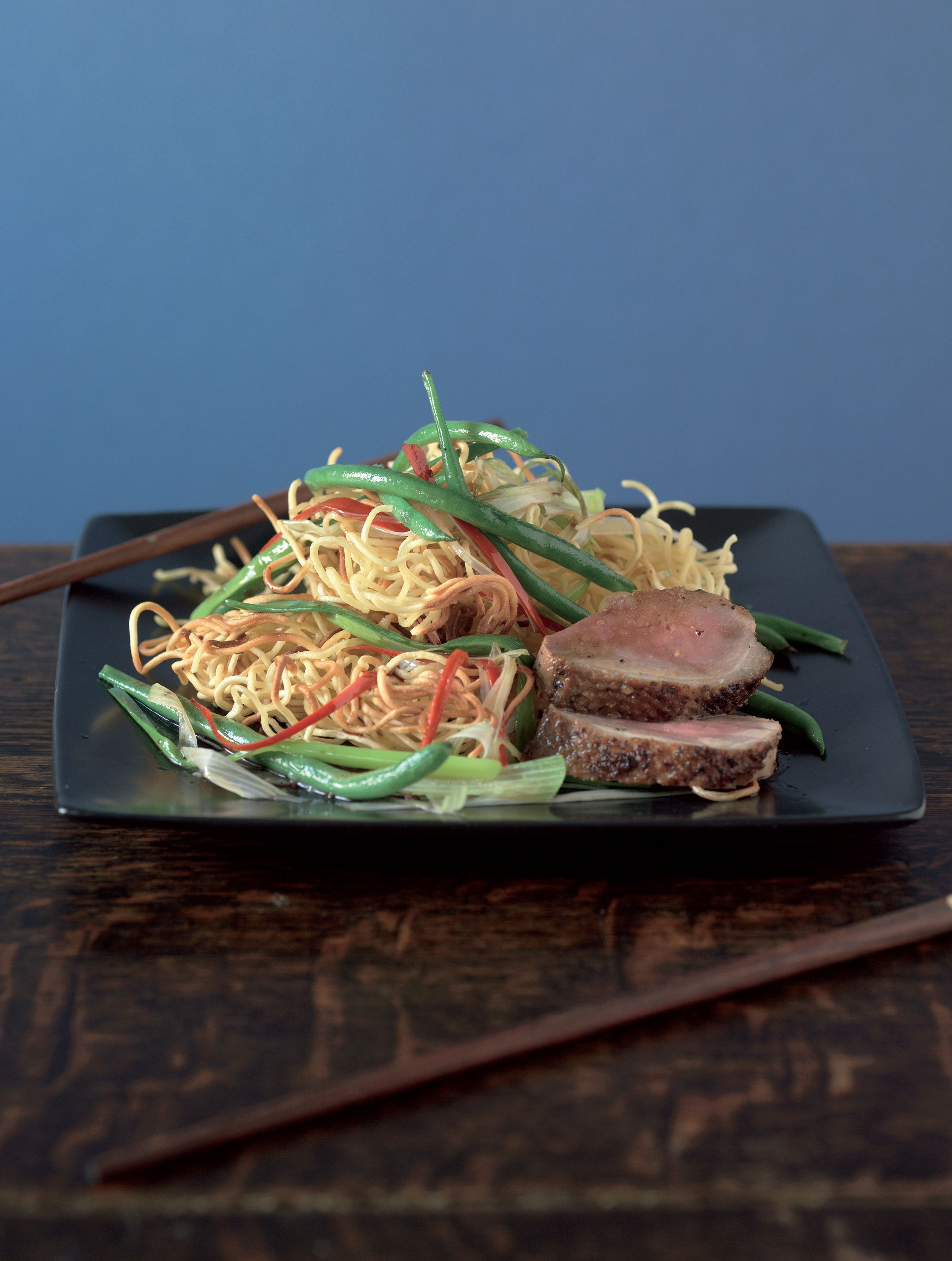 Pikantní pečená prsíčka, výborné nudle a sójová omáčka. Chuť doplňuje zázvor, česnek, cibulka a chilli.