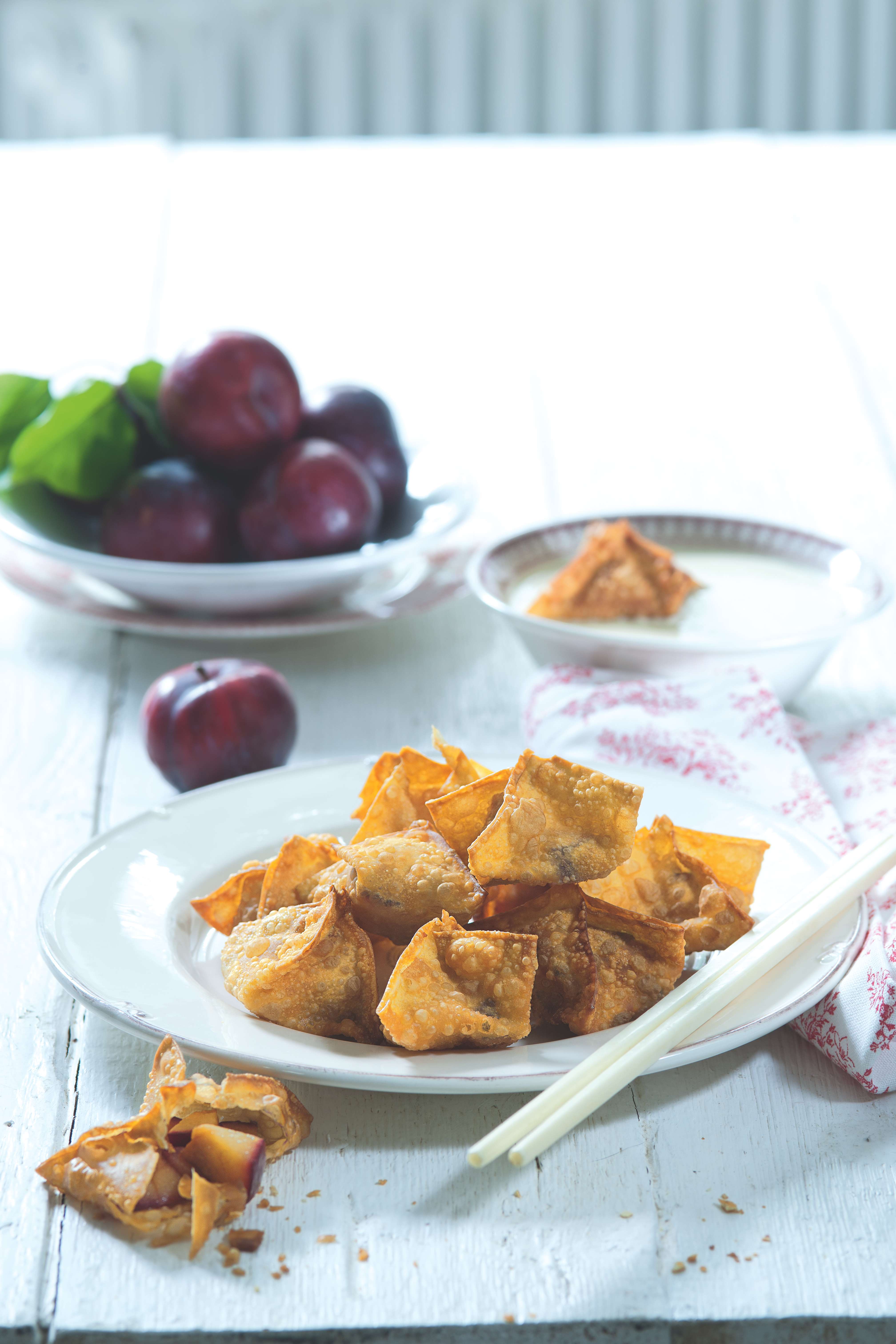 Fusion asijské kuchyně s českou zahrádkou: z nečekaného spojení se zrodí blaho – křupavé knedlíčky plné šťavnatého ovoce zalité sametovou omáčkou.