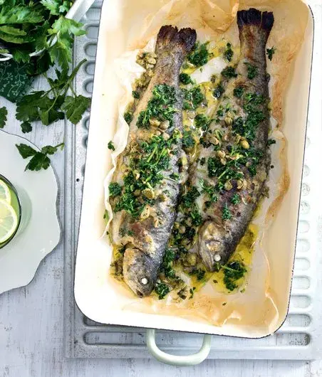 Čerstvý pstruh na másle s petrželkou a kapary je spojení, kterému se jen těžko konkuruje.
