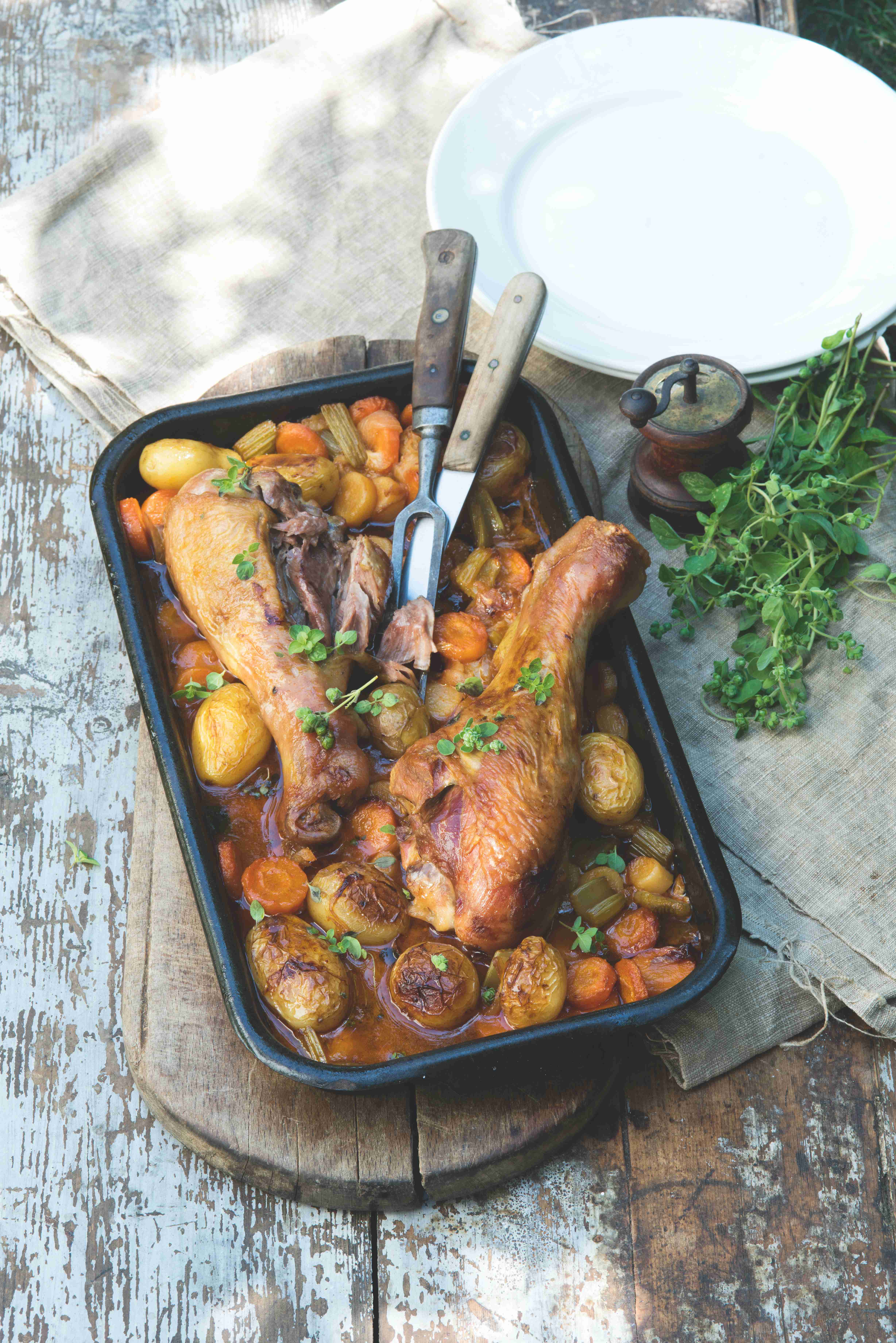 Nemáte po ruce čerstvou majoránku? Nevadí, můžete ji bez problémů nahradit sušenou – té potom stačí mnohem méně. Krůta s kořenovou zeleninou a majoránkou představuje luxusní jídlo z jednoho pekáče pro celou rodinu.