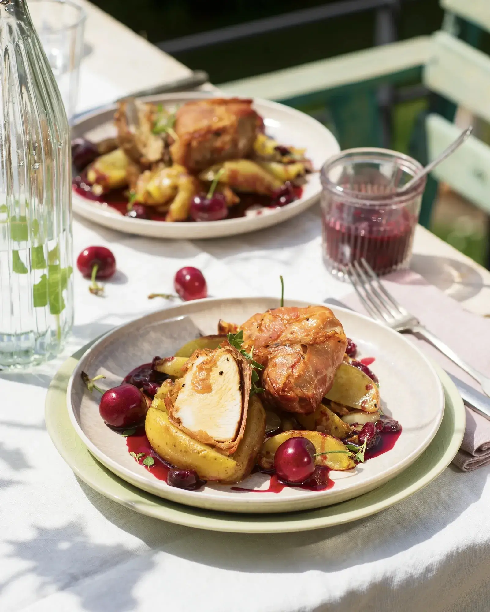 Krůtí balíčky s pršutem podávané s pečenými bramborami a omáčkou z třešní je luxusní jídlo, ve kterém se snoubí tradiční i méně obvyklé suroviny. Hodí se jako hlavní chod na garden party nebo slavnostní rodinnou událost.