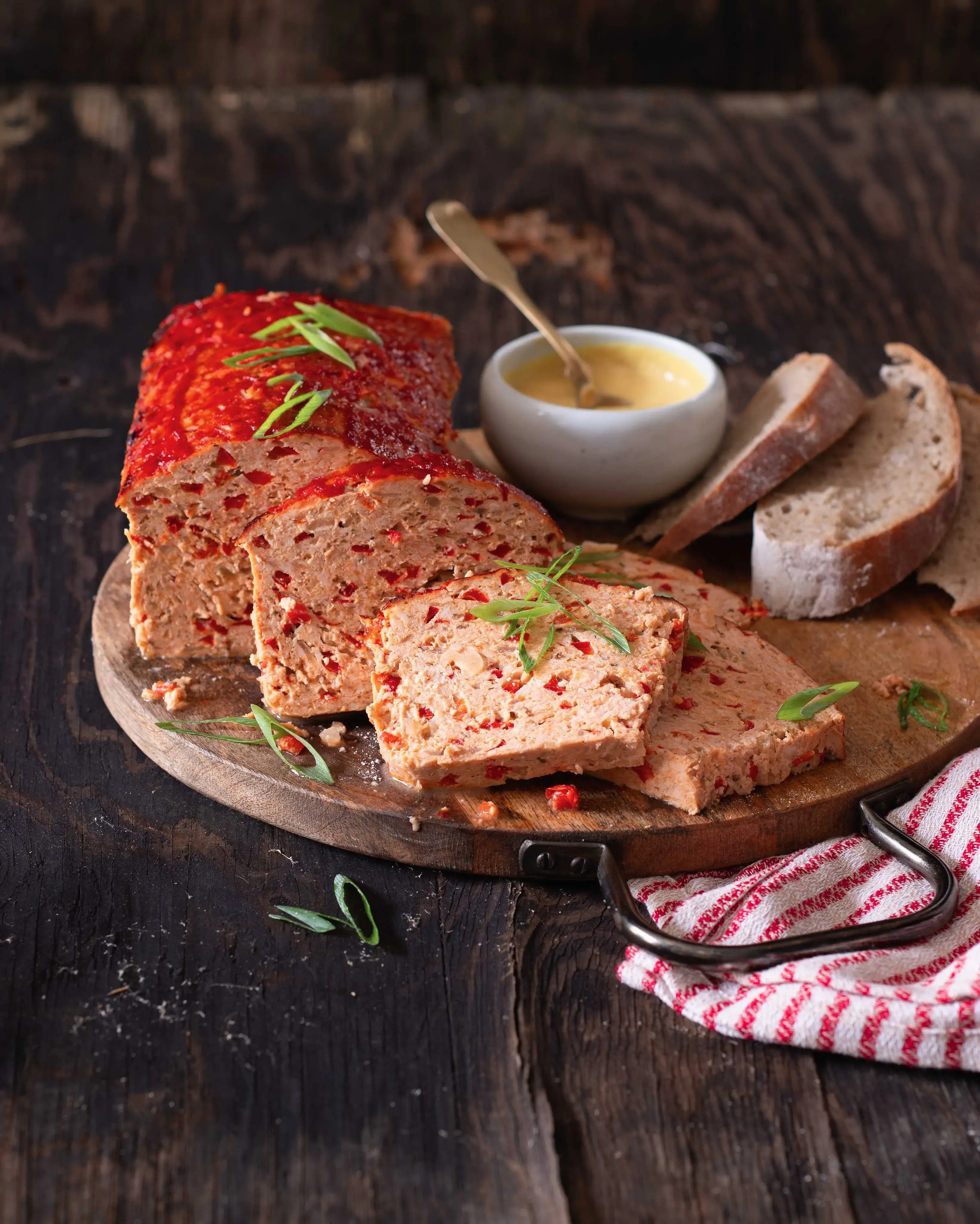 Tahle krůtí sekaná je krásně šťavnatá díky přidané zelenině opečené v másle, a pokud byste jí chtěli dodat uzenější příchuť, můžete ubrat másla a v zeleninové směsi opéct i malé kostičky špeku. Sekaná vás navíc při nakrojení potěší fantastickou mozaikou.
