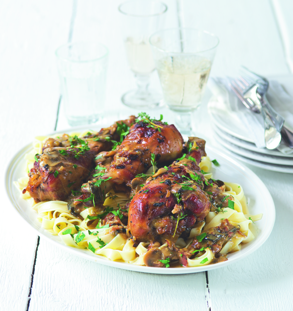 Krůtí stehna lze připravit i tak, že obstojí jako hlavní chod svátečního oběda. V kombinaci se žampiony a smetanou budou ozdobou vaší tabule!