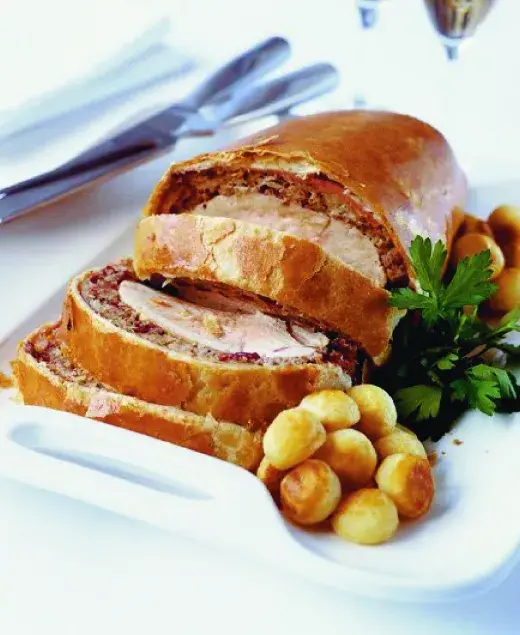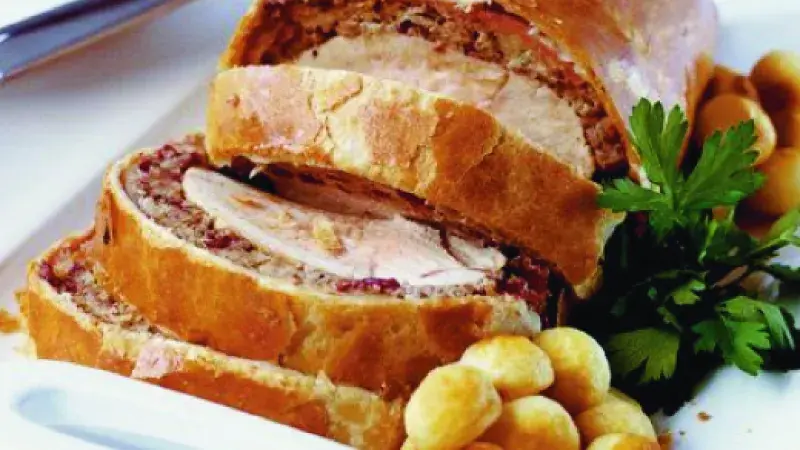 Wellington je britská specialita spojená tradicí s hovězím masem. Sváteční kabátek z těsta s podšívkou z nádivky ale svědčí i krůtě.