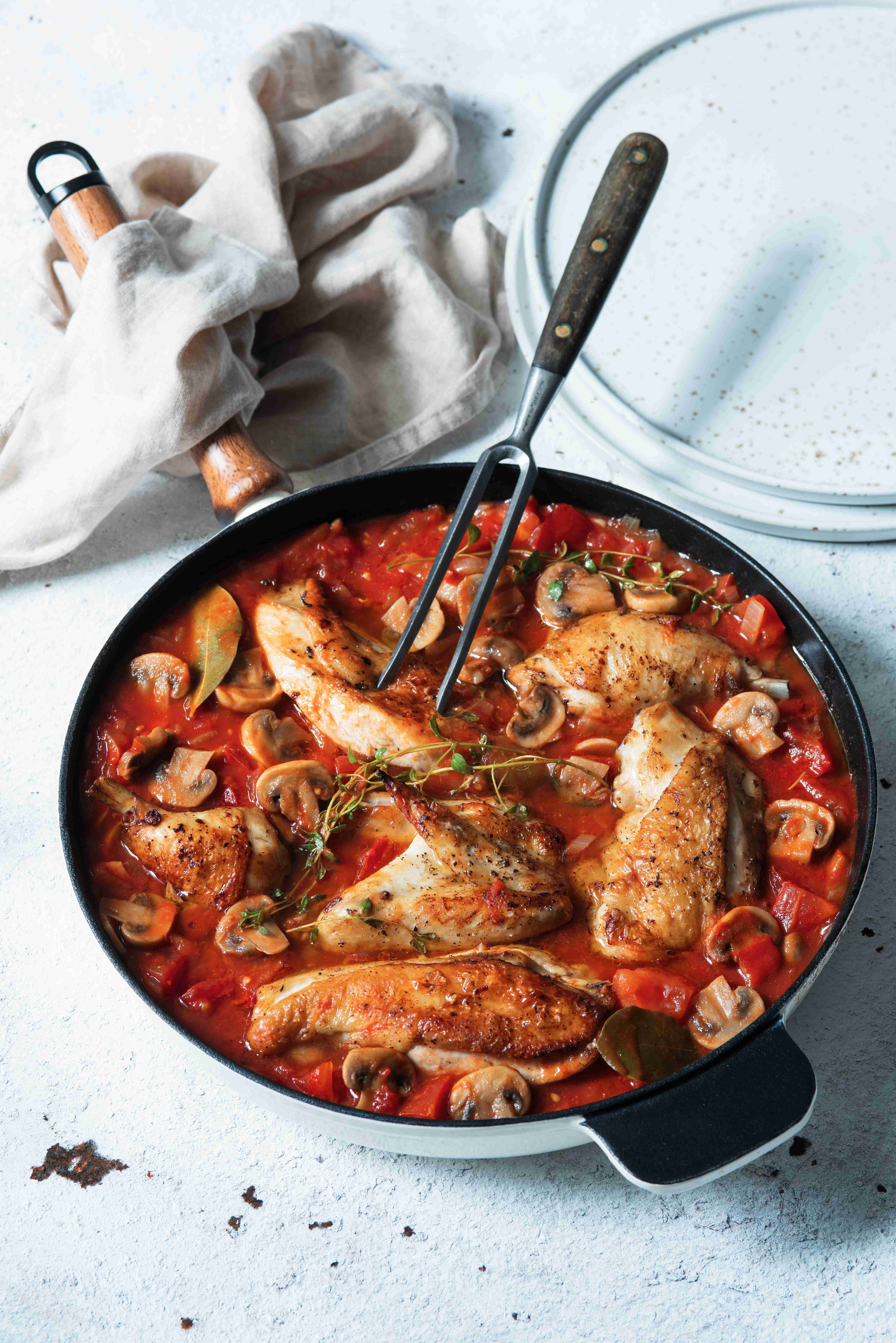 Legendy tvrdí, že kuře Marengo (podle italské vesničky, u které se konala slavná bitva) poprvé uvařil Napoleonův kuchař François Claude Guignet (Dunant) svému pánovi narychlo z toho, co se podařilo poshánět po okolí – kuřete, rajčat, olivového oleje, bílého vína (či koňaku), raků, vajec a bílého chleba. Pro domácí kuchyni vám nabízíme moderní verzi, inspirovanou šéfkuchařem Pierrem Franeym.