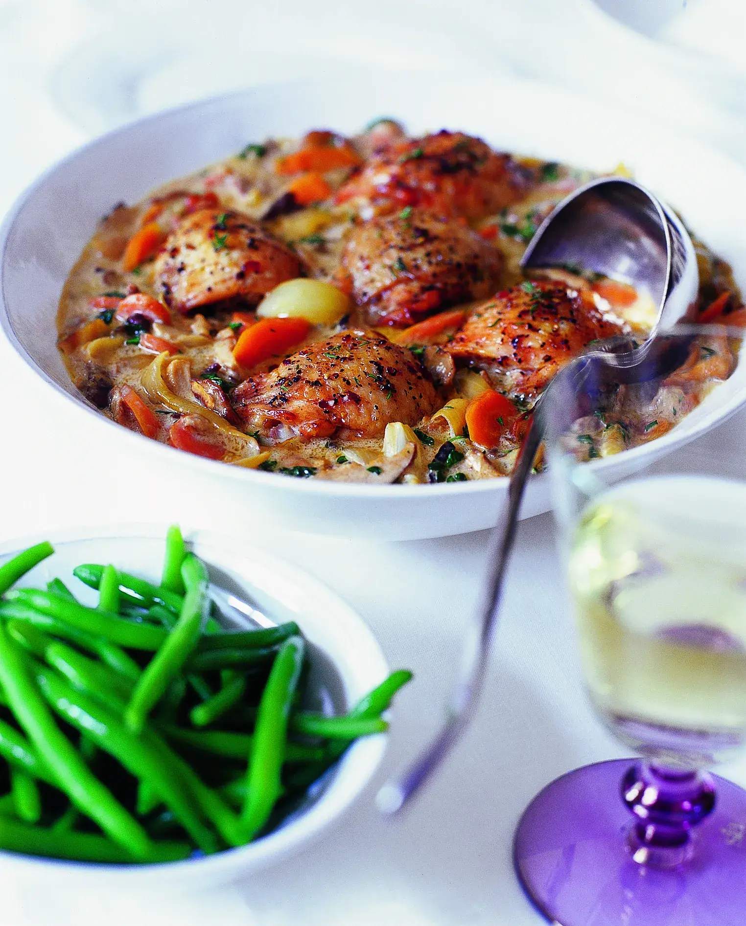 ,Značkové‘ jídlo regionu Bresse vyzdvihuje dvě hlavní kulinářské přednosti: kuřata z volného chovu a lahůdkovou smetanu. Proto i vy se při přípravě tohoto receptu zaměřte především na kvalitu těchto surovin. Jedině tak vynikne pravá chuť kuřete na houbách a smetaně.