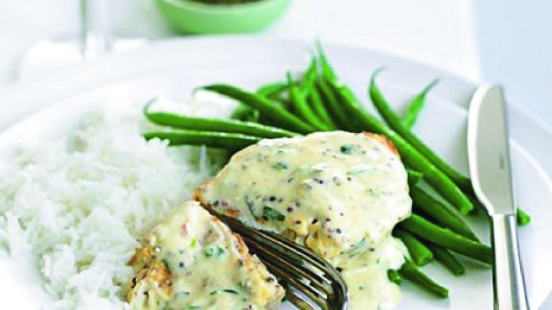 Omáčka s příchutí estragonu a hořčice dodává pokrmu francouzský nádech. Ideální večeře k vínu.