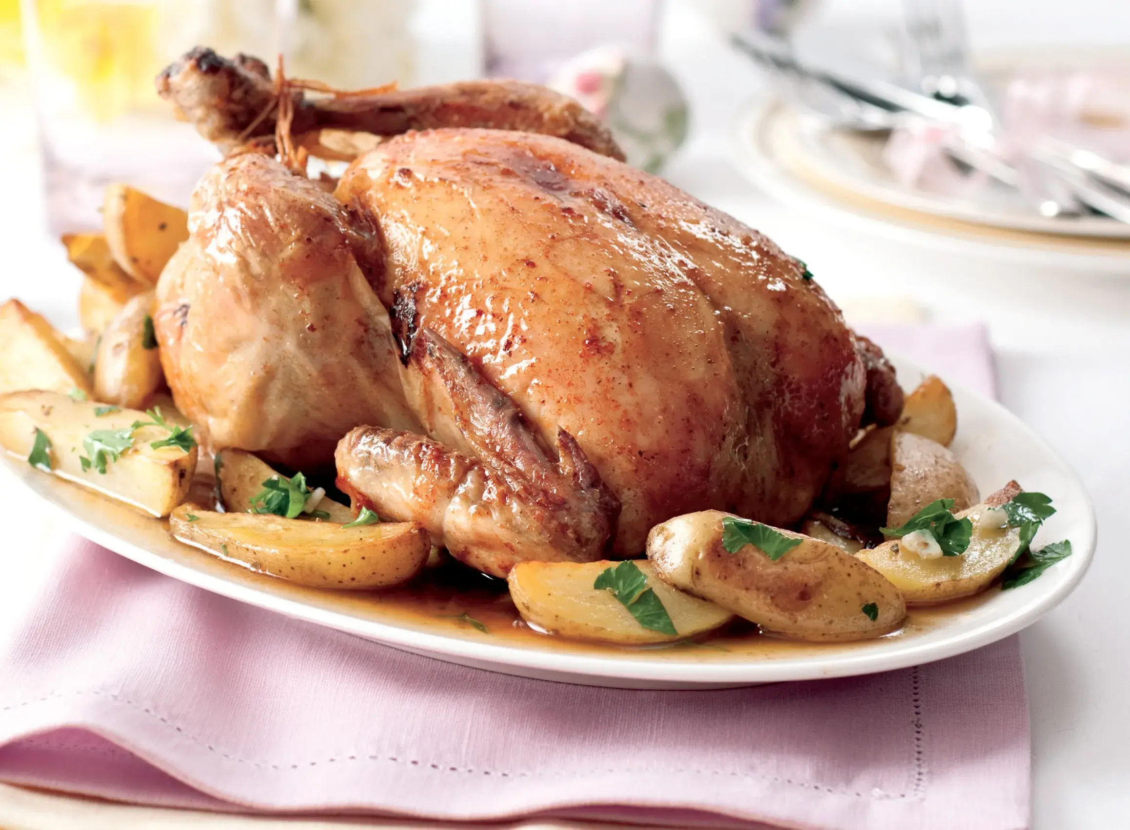 Recept z Italské kuchařky od Marcelly Hazan je úplně snadný a božsky dobrý. Navíc je velmi dietní, protože se nepřidává žádný tuk – přesto je kuře šťavnaté a zlaté.