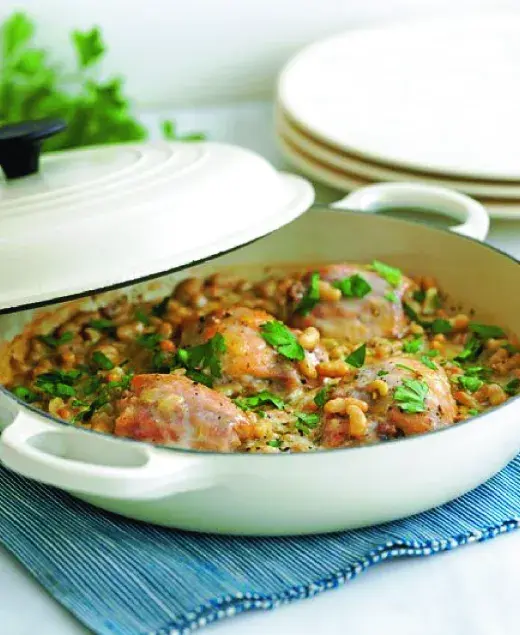 Fazolky a víno kuře krásně doplní. Podávejte třeba s rýží.