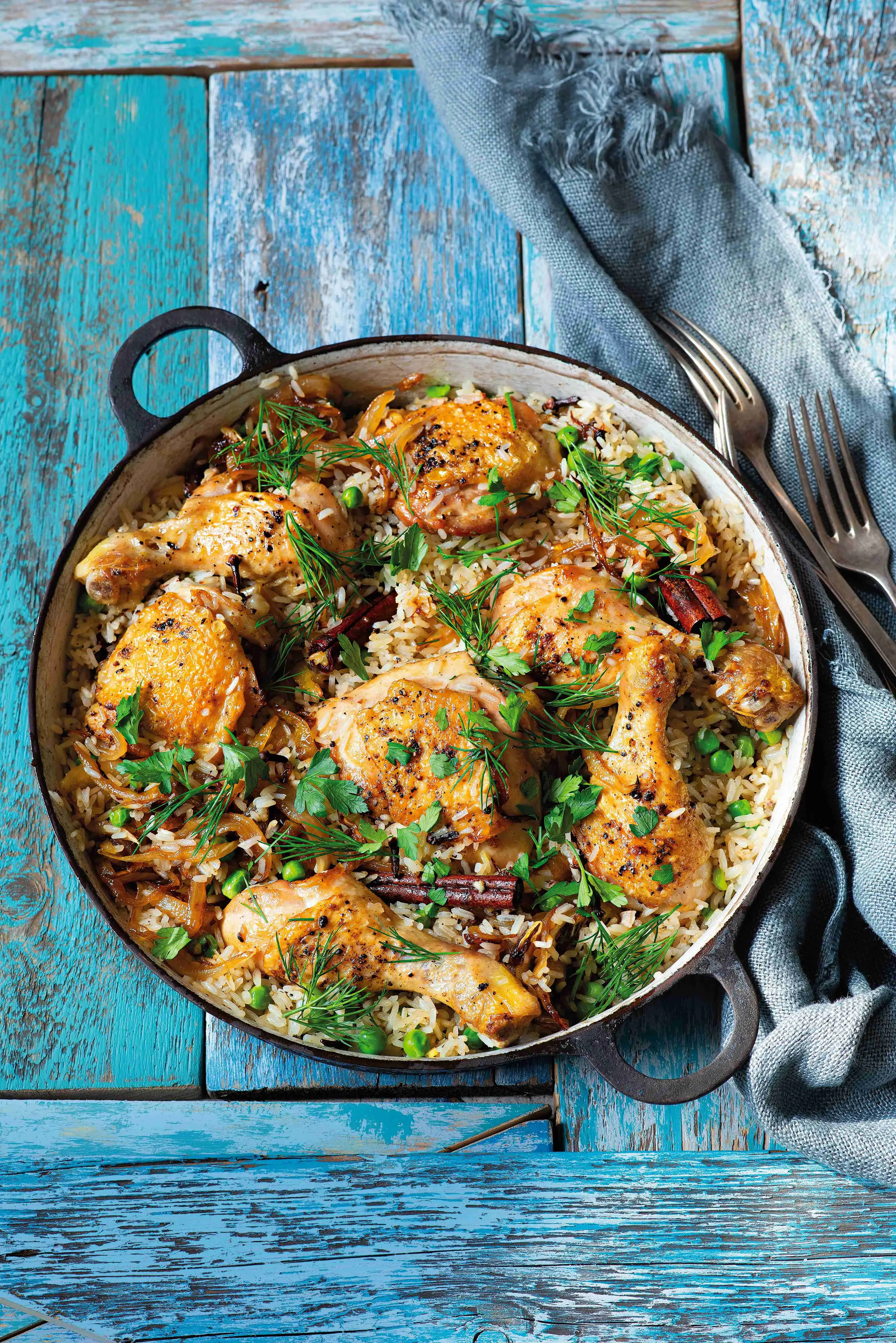 Maso dušené s rýží a aromatickým kořením patří mezi stálice orientální kuchyně. Inspirovali jsme se receptem Yotama Ottolenghiho, ale trochu jsme jej přizpůsobili, a tak je kuře voňavé i přístupné odpůrcům exotických chutí.